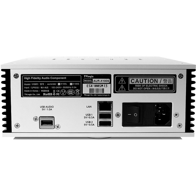 Для сетевых подключений, приема потокового аудио, обновления ПО и переноса файлов Aurender X100 оснащен LAN-портом Gigabit Ethernet, а также двумя портами USB 2.0 для копирования данных с USB-накопителей.
