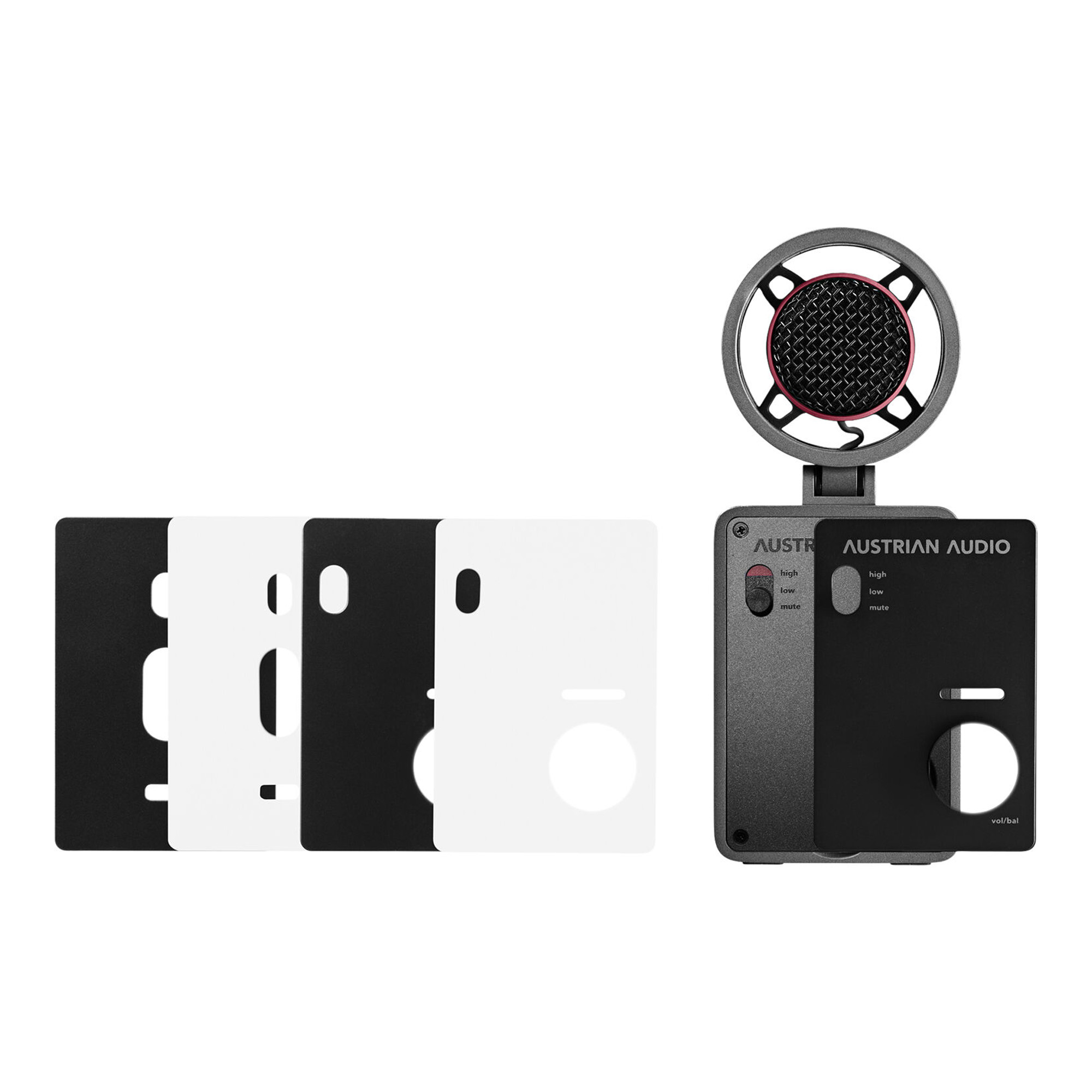 Благодаря резиновым ножкам, которые также расположены на нижней стороне, микрофон MiCreator Studio всегда надежно стоит на ровной поверхности. Тем не менее, его можно использовать и в качестве ручного микрофона, поскольку для обеспечения оптимальной изоляции от структурных шумов в нем установлен виброизолирующий капсюль. Независимо от того, где и как расположен микрофон, всегда имеет смысл направлять поворотную головку на записываемый источник. Для борьбы с нежелательными эффектами в MiCreator Studio предусмотрена внутренняя защита от всплытия, которая при недостаточности может быть заменена на опциональную защиту от всплытия (например, Austrian Audio OCP8).
