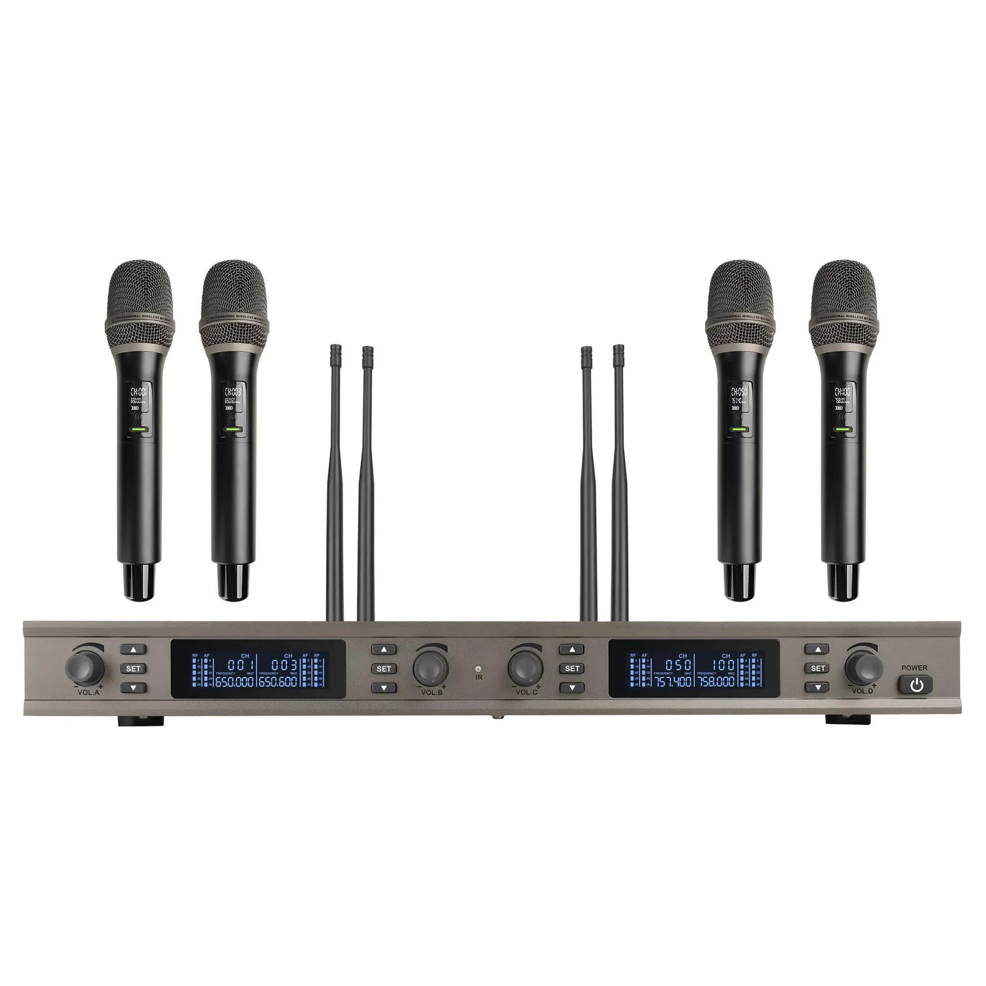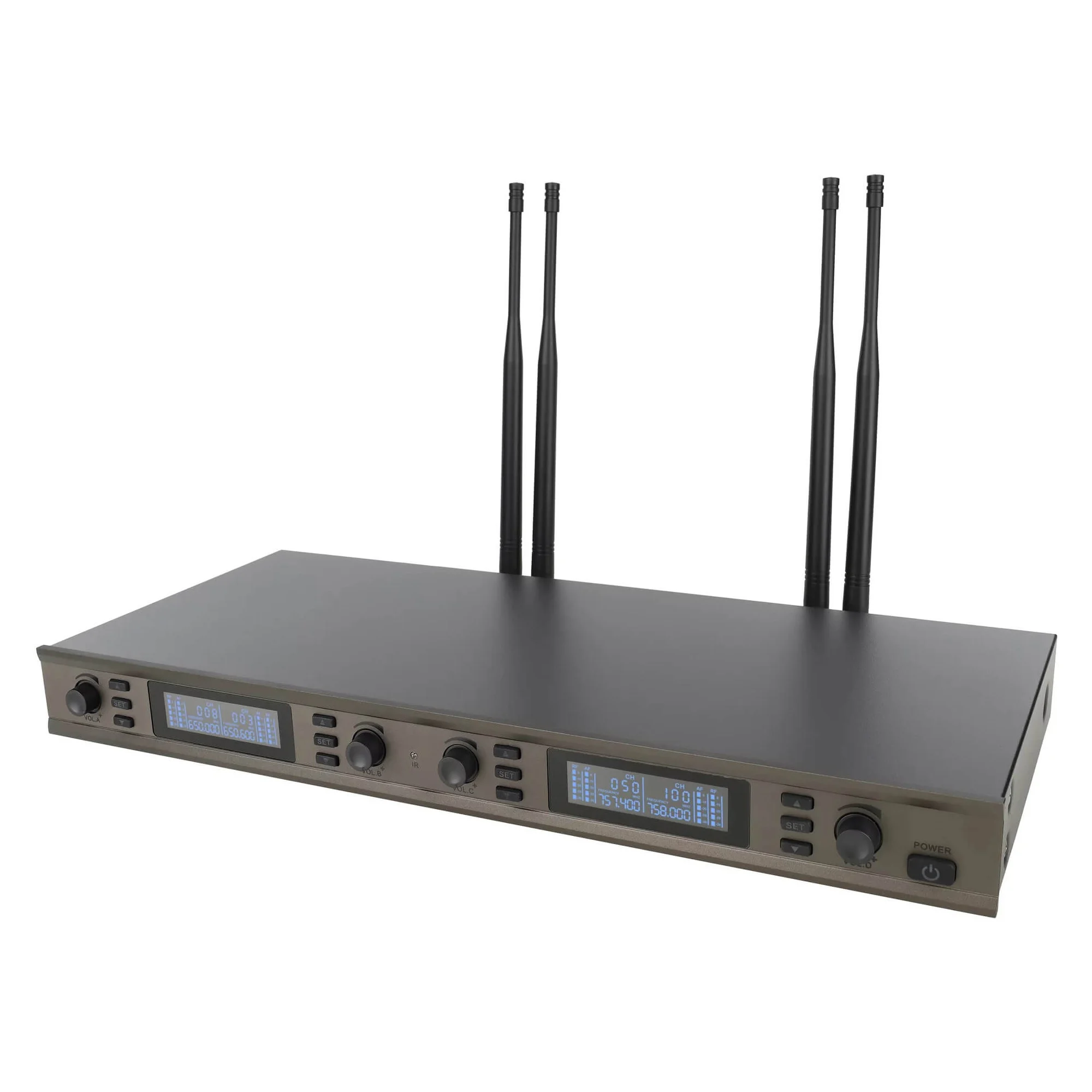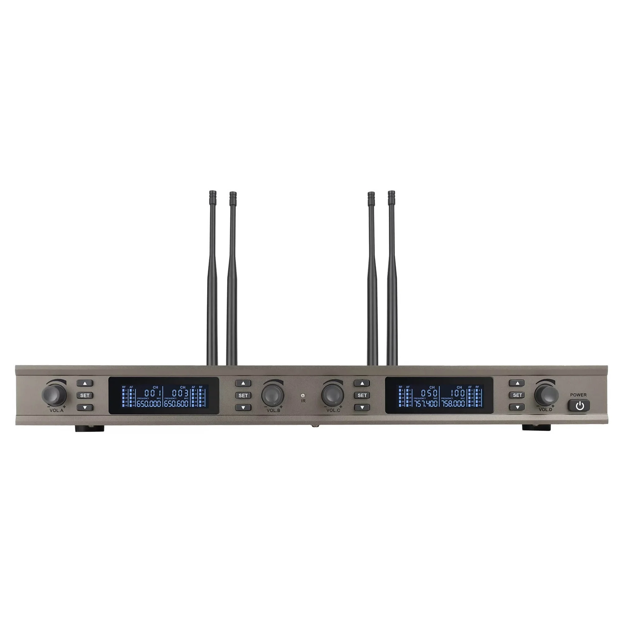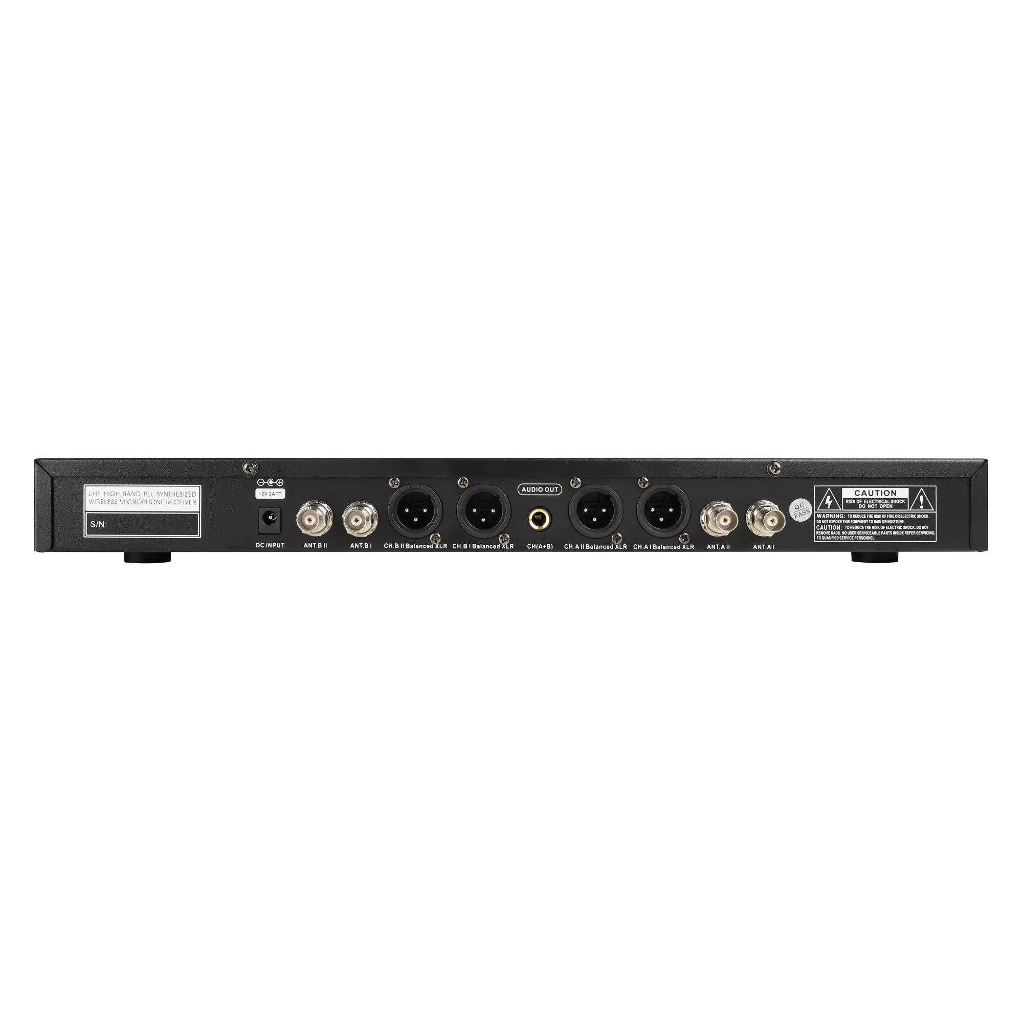 Axelvox DX800FC - высококачественная четырехканальная беспроводная цифровая вокальная радиосистема профессионального уровня с DSP, состоящая из четырех микрофонов и четырехканального приемника рэк 1U. Станция способна анализировать эфир и автоматически находить оптимальные (свободные) частоты для работы. Расширенный частотный диапазон 650 - 758 МГц.
