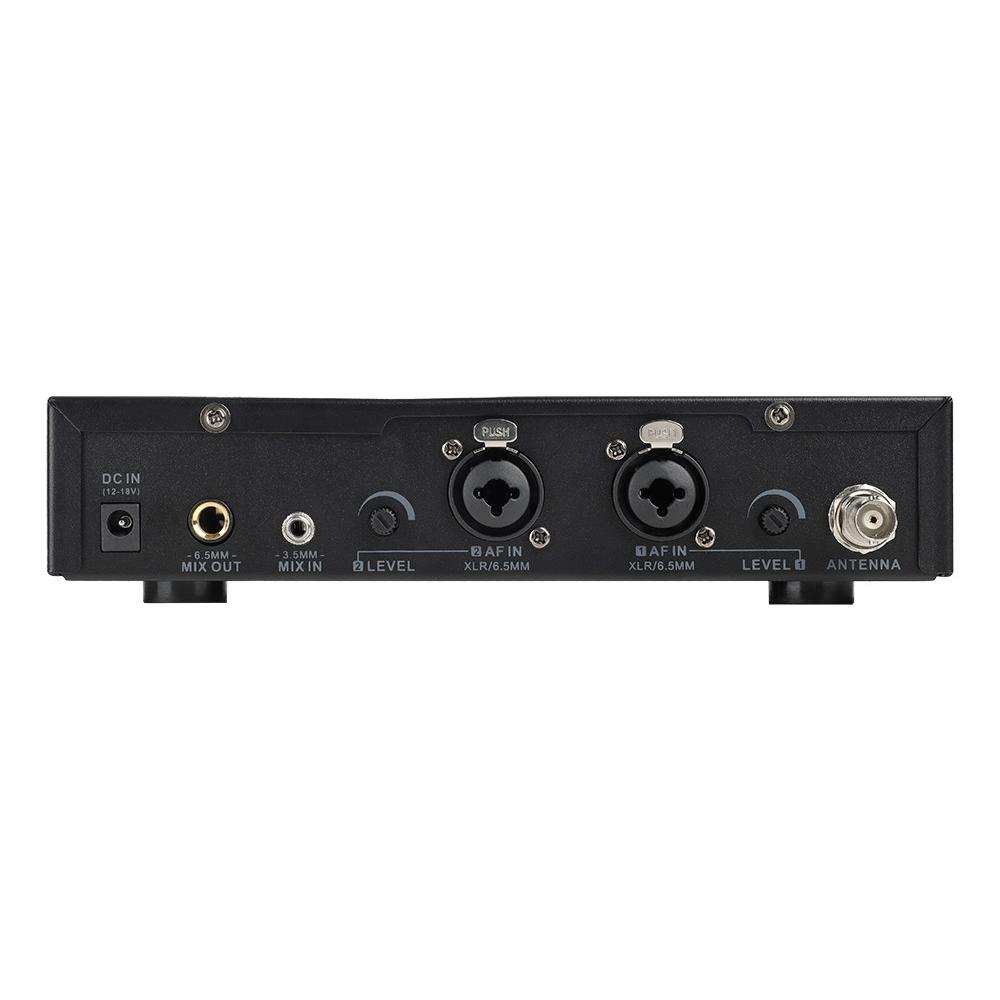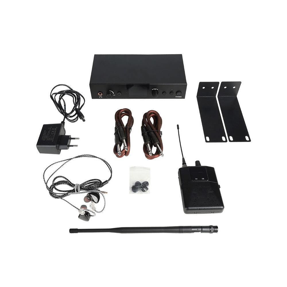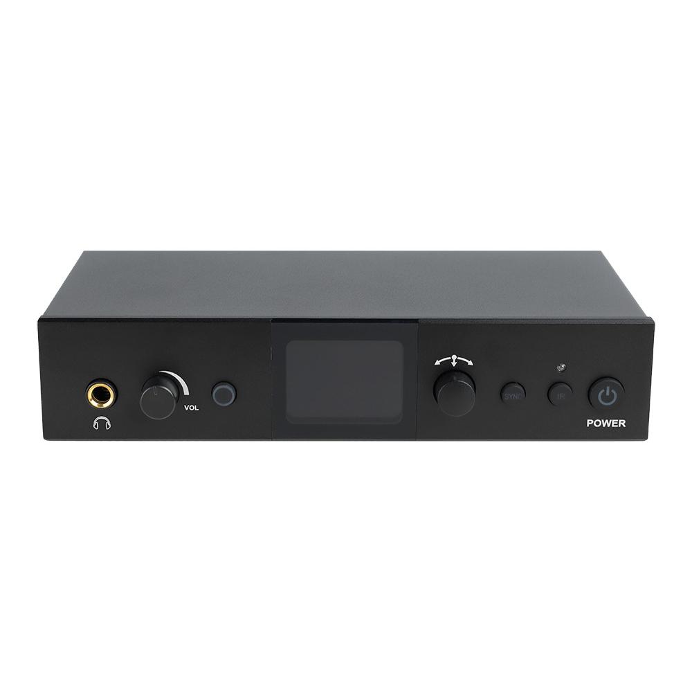 Для передачи аудиосигнала присутствует одна съемная антенна, выход для которой сделан на разъеме BNC. Присутствует выход для наушников на разъеме 1/4" Jack TRS с отдельным регулятором громкости и выход 1/4" Jack TRS для вывода звука в микшерный пульт или акустическую систему. На цветном дисплее, расположенном на лицевой панели, отображаются все актуальные настройки, а управление происходит с помощью энкодера и клавиш. Питание осуществляется от адаптера 12V DC, который поставляется в комплекте.