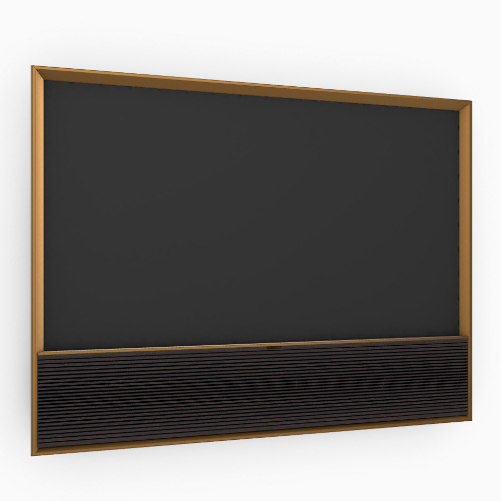Отличительная алюминиевая напольная подставка и рамка подчеркивают уникальный минималистичный дизайн. В нем нет ничего несущественного: его главная функция – обеспечивать самые реалистичные телевизионные аудио- и видеовпечатления.