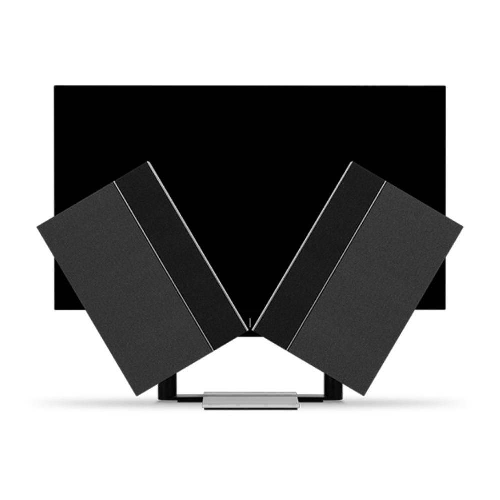 Телевизор Beovision Harmony – шедевр дизайна от Bang & Olufsen, в его основе OLED-панель и моторизованная аудиосистема, механизм открытия которой напоминает крылья бабочки. Экран телевизора в выключенном состоянии закрывает конструкция аудиосистемы. При включении экран автоматически приподнимается, а две части аудиосистемы поднимаются, как крылья бабочки, открывая экран. Две части аудиоцентра прикрыты декоративными панелями — либо ламелиями в отделке дуб/алюминий, либо тканевыми панелями.