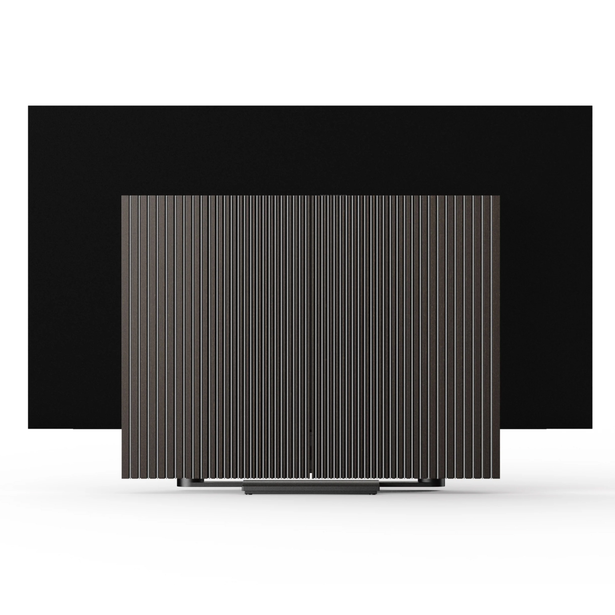 Телевизор Beovision Harmony – шедевр дизайна от Bang & Olufsen, в его основе OLED-панель и моторизованная аудиосистема, механизм открытия которой напоминает крылья бабочки. Экран телевизора в выключенном состоянии закрывает конструкция аудиосистемы. При включении экран автоматически приподнимается, а две части аудиосистемы поднимаются, как крылья бабочки, открывая экран. Две части аудиоцентра прикрыты декоративными панелями — либо ламелиями в отделке дуб/алюминий, либо тканевыми панелями.