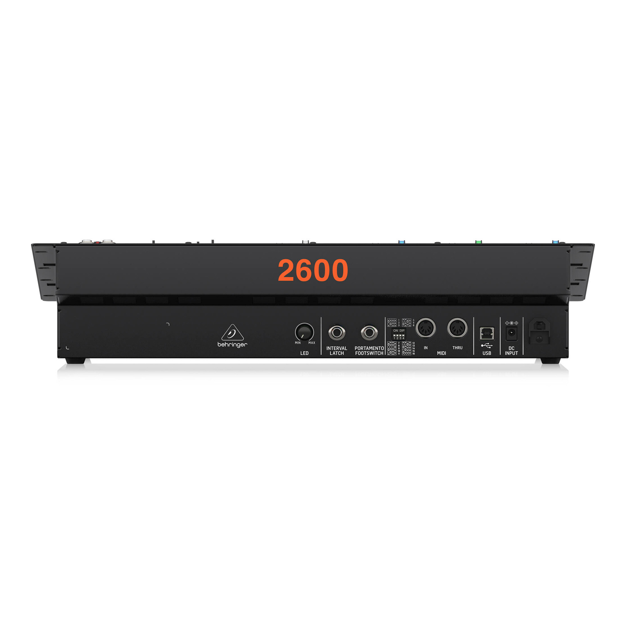 Behringer 2600 оснащен 3 основными VCO-осцилляторами, каждый из которых имеет режим LFO и несколько форм волны. У инструмента также есть ADSR и AR секции с расширенной регулировкой времени атаки, два фильтра, генератор шума и многорежимный VCF. Для дополнительной обработки звука предусмотрен набор встроенных модулей, включающий в себя кольцевой модулятор, дилей, постфильтр искажений, повторитель огибающей и триггер Шмитта. Управление сигналом можно осуществлять посредством патчинга, для которого имеются 83 точки соединений. В общей сложности модель укомплектована 78 управляющими элементами. Коммутационные возможности: USB, MIDI In/Thru, 2 разъема для педалей, выход для наушников.