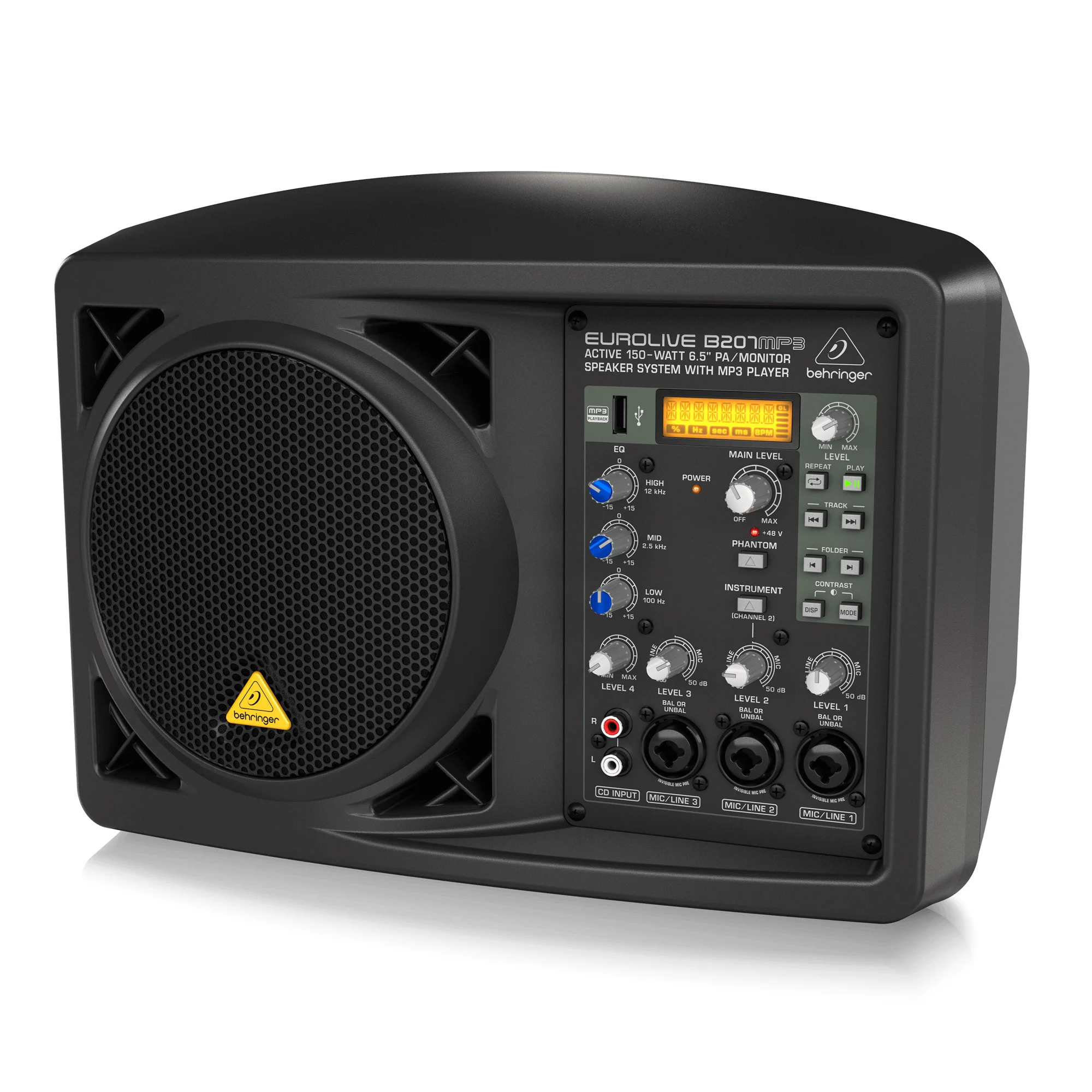 B207MP3 – это чрезвычайно компактный и мобильный динамик активного типа. При скромных габаритах и весе этот динамик обеспечивает высокую мощность звука и максимальную линейность передаточной функции, что возможно благодаря использованию качественных и энергоэффективных компонентов. Устройство нацелено на полную автономность, так что для его подключения к источникам звука не обязательны дополнительные переходники или микшер. Инструменты настройки параметров звука делают B207MP3 ещё более автономным и подходящим для установки в помещении с любой акустикой.