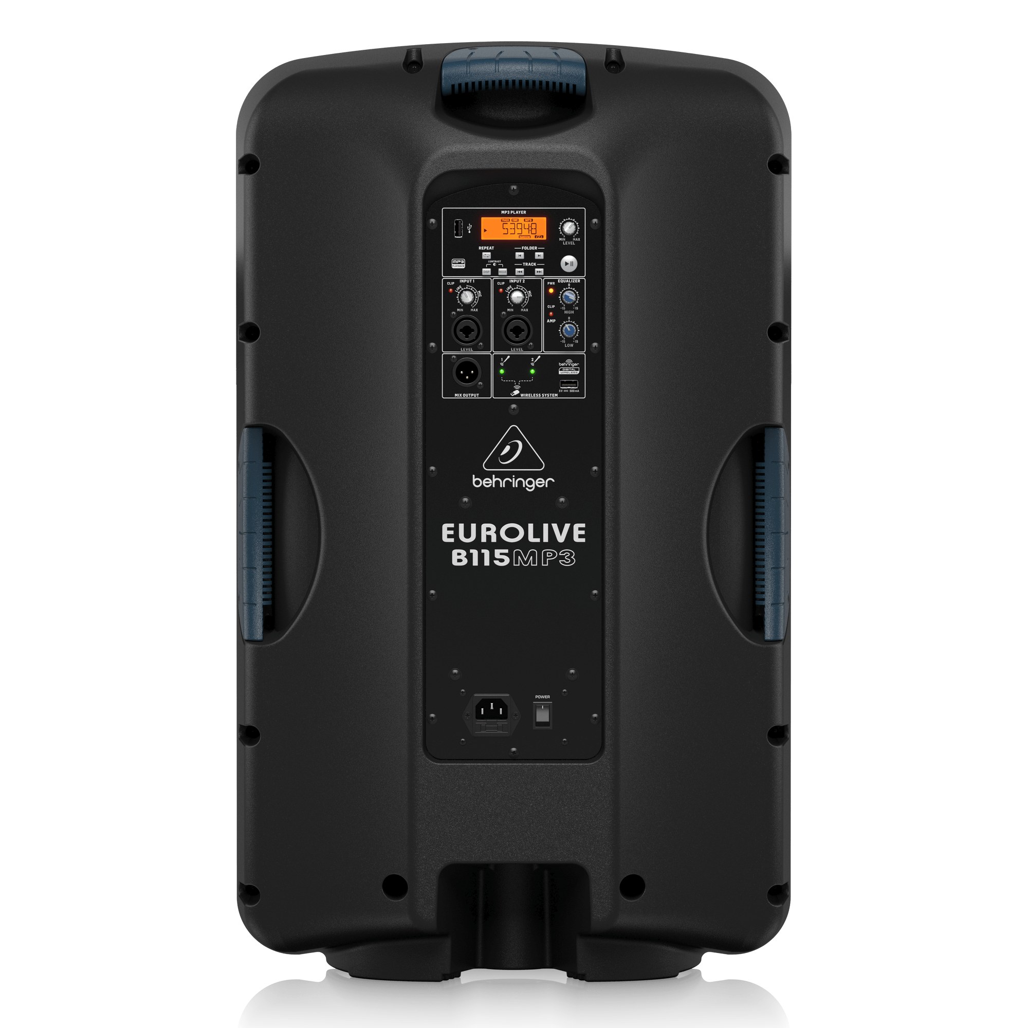 B115MP3 совместима с беспроводными микрофонными системами Behringer Wireless (опционально). Через встроенный USB 3.0 разъём можно подключить приёмник для микрофонов, работающих на частоте 2.4 ГГц.