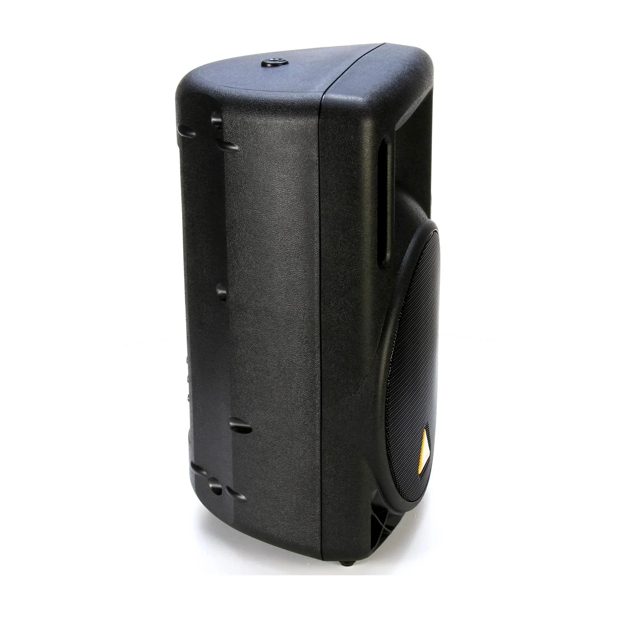Трапециевидный корпус выполнен из прочного пластика и позволяет устанавливать колонку в различных положениях: