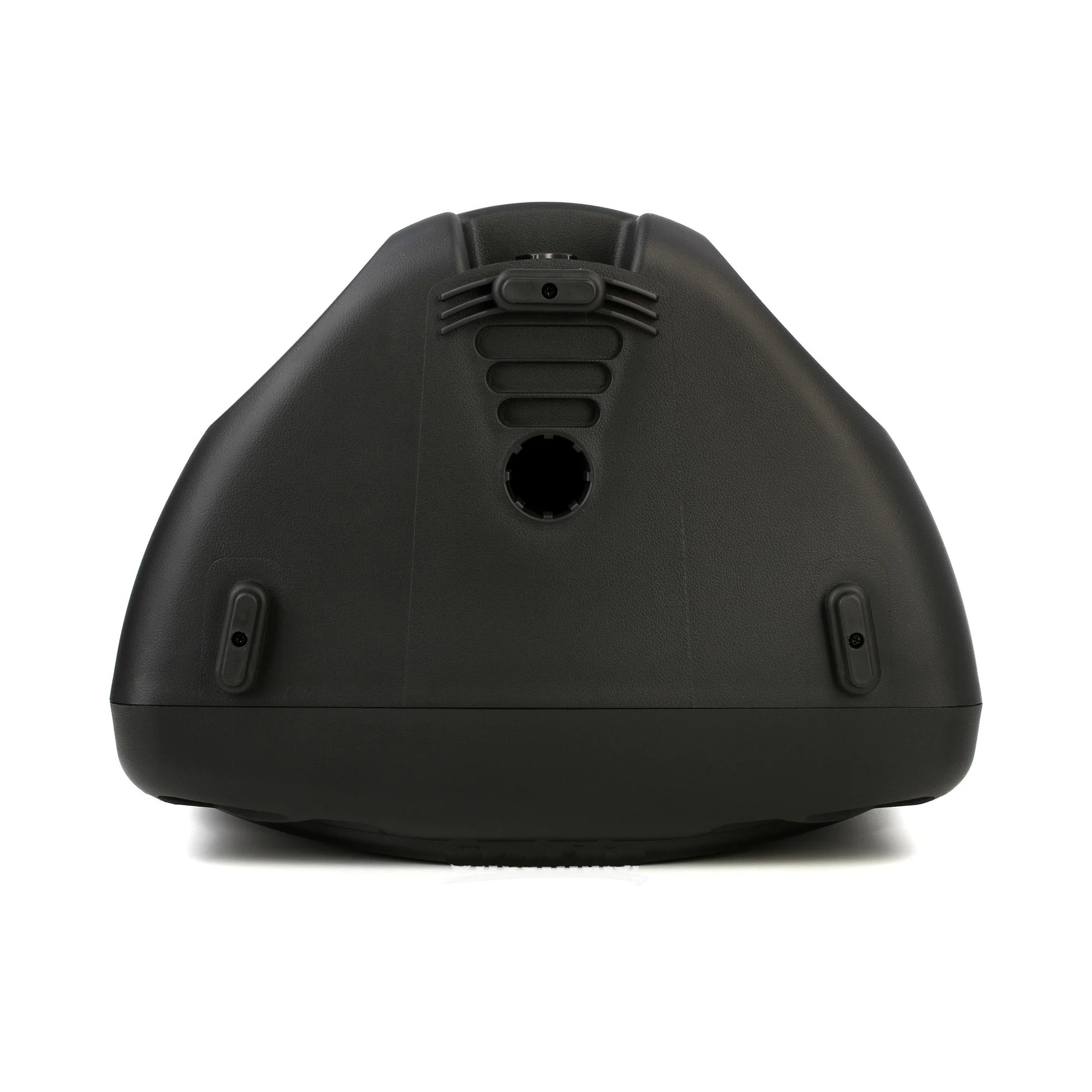 Передняя часть колонки защищена перфорированной стальной решёткой, предотвращающей повреждение динамиков при транспортировке и активной сценической эксплуатации. Трапециевидная форма корпуса не только улучшает акустические характеристики, но и делает установку более универсальной: колонку можно использовать как фронтальную акустику, как сценический монитор, а также смонтировать на стену или стойку.