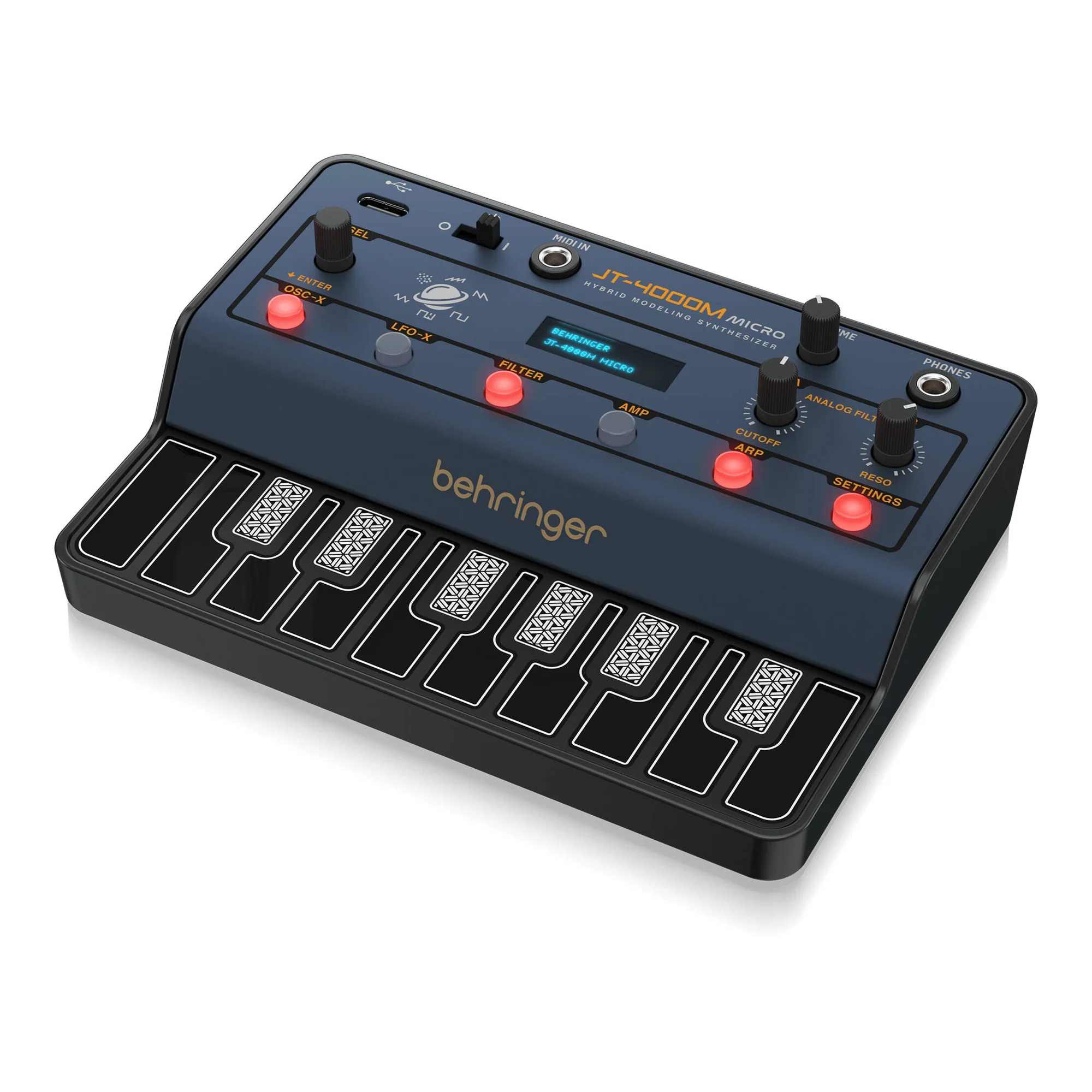 JT-4000M MICRO — это усовершенствованная версия звукового движка JP8k с осциллограммой Supersaw. Мы добавили в него функцию shrink ray, 32 пресета в памяти, возможность подключения через USB для работы с MIDI-файлами и множество других возможностей, которые делают его универсальным и мощным синтезатором, способным удовлетворить любые потребности.