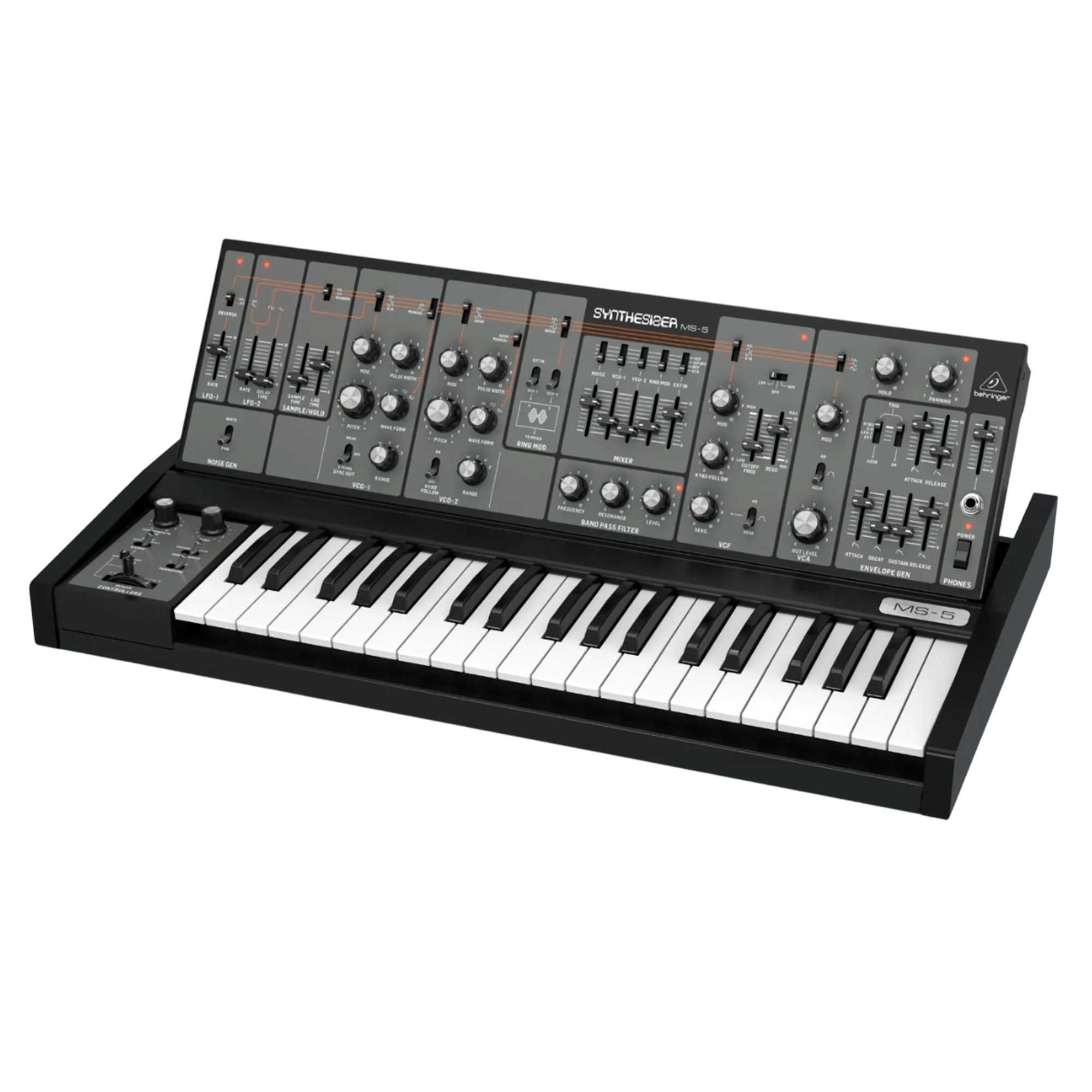 Behringer MS-5 является точным воспроизведением оригинальной схемы «SH-5» и оснащен 37 полувзвешенными клавишами с функцией velocity, позволяющей изменять интенсивность ноты в зависимости от силы или мягкости нажатия клавиши. В сочетании с чисто аналоговым сигнальным трактом вы получите огненные риффы, идеально подходящие для следующего научно-фантастического шедевра.