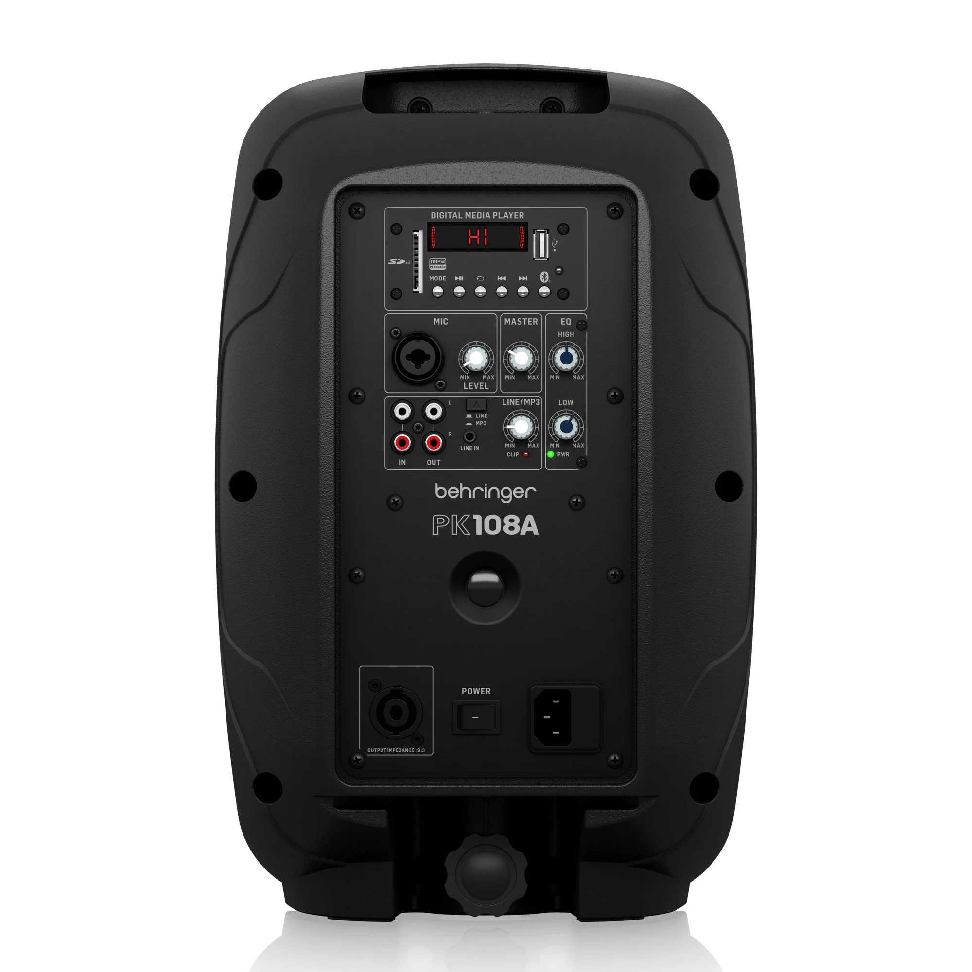 Behringer PK108A оснащена встроенным медиаплеером с Bluetooth-приёмником версии 5.0, поддерживающим профили A2DP.