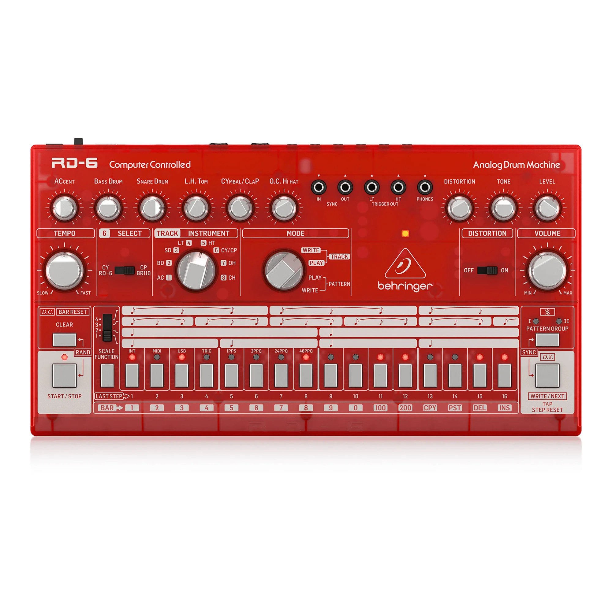 Behringer RD-6 представляет собой компактную аналоговую драм-машину, являющуюся копией легендарной модели Roland TR-606, которая была в производстве с 1981 по 1984 год. По функционалу данная версия практически полностью повторяет оригинал, предлагая лишь некоторые современные функции, такие как USB-интерфейс и расширенные возможности коммутации и синхронизации с подобными внешними устройствами.