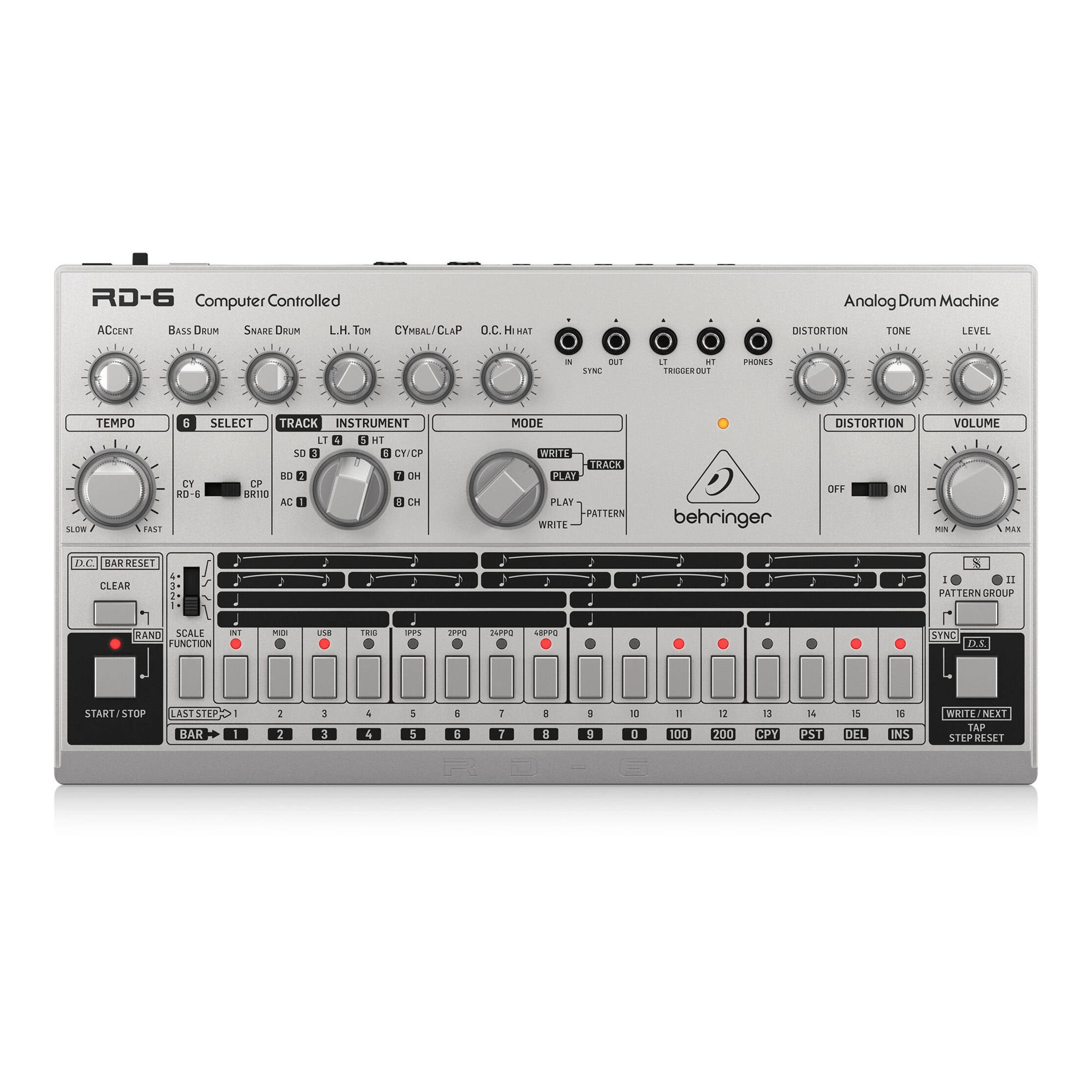 Behringer RD-6 представляет собой компактную аналоговую драм-машину, являющуюся копией легендарной модели Roland TR-606, которая была в производстве с 1981 по 1984 год. По функционалу данная версия практически полностью повторяет оригинал, предлагая лишь некоторые современные функции, такие как USB-интерфейс и расширенные возможности коммутации и синхронизации с подобными внешними устройствами.