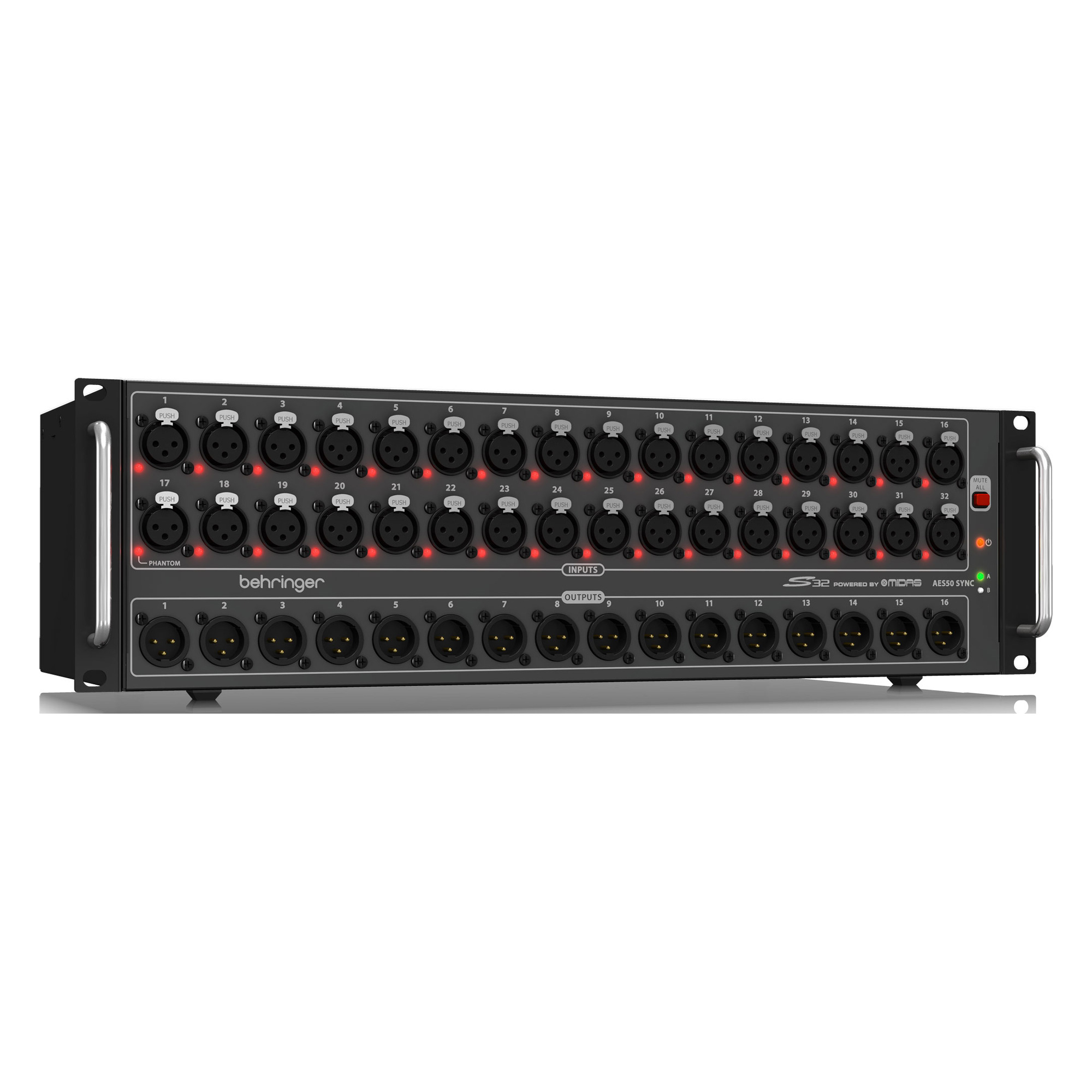 Когда S32 используется как часть Х32 системы, два S32 могут быть подключены через встроенные двойные AES50 порты, обеспечивая до 64 микрофонных/линейных входов, 32 сбалансированных выхода и подключение POWERPLAY P-16, который может питать до 16 индивидуальных мониторов, через кабель CAT5. Если 32 входов недостаточно, стейдж бокс S32 может быть каскадирован с S16 или SD16. S32 имеет два оптических ADAT выхода и два стерео выхода AES-3 (AES/EBU) для цифрового подключения к внешним устройствам, таким как системные контроллеры PA. S32 также оснащен портом USB для быстрого и легкого обновления системы через ПК – плюс MIDI входом/выходом для осветительных систем и управления звуковым модулем.