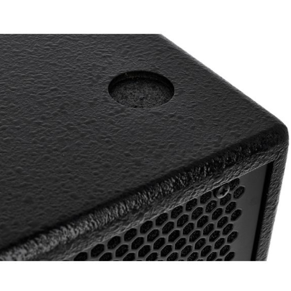 Корпус выполнен из прочных материалов с перфорированной стальной решёткой, защищающей динамик от механических повреждений. Эргономичные встроенные ручки обеспечивают комфортную транспортировку, а компактные размеры делают модель идеальным выбором для мобильных диджеев, инсталляторов и гастролирующих музыкантов.