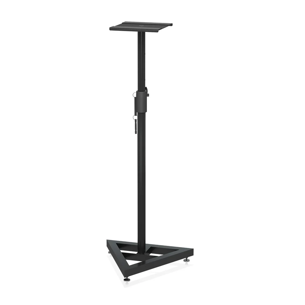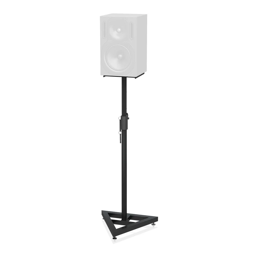Надежная установка с точной регулировкой высоты от 0.93 м до 1.15 м обеспечивает правильное размещение. Треугольная конструкция основания крепления и большая металлическая платформа 10" x 10" (25 x 25 см) с мягкой прорезиненной подкладкой обеспечивают надежное и стабильное размещение мониторных колонок.