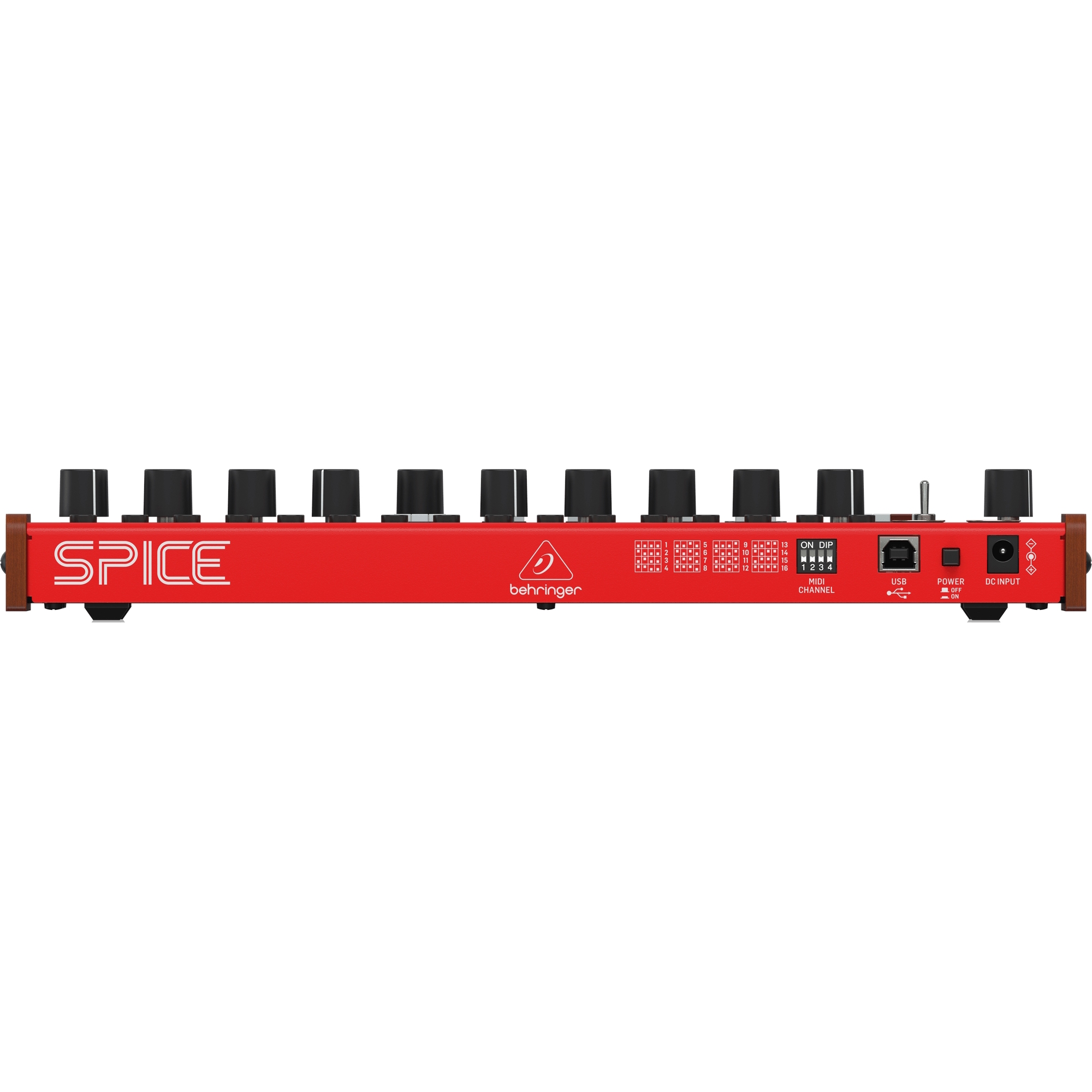 Behringer SPICE вдохновлен классическими аналоговыми синтезаторами, включая Moog Subharmonicon, Trautonium и Rythmicon. Два основных осциллятора и четыре суб-осциллятора создают широчайший диапазон звуков — от массивных бас-линий и пульсирующих аккордов до необычных текстур и экспериментальных звуковых ландшафтов.