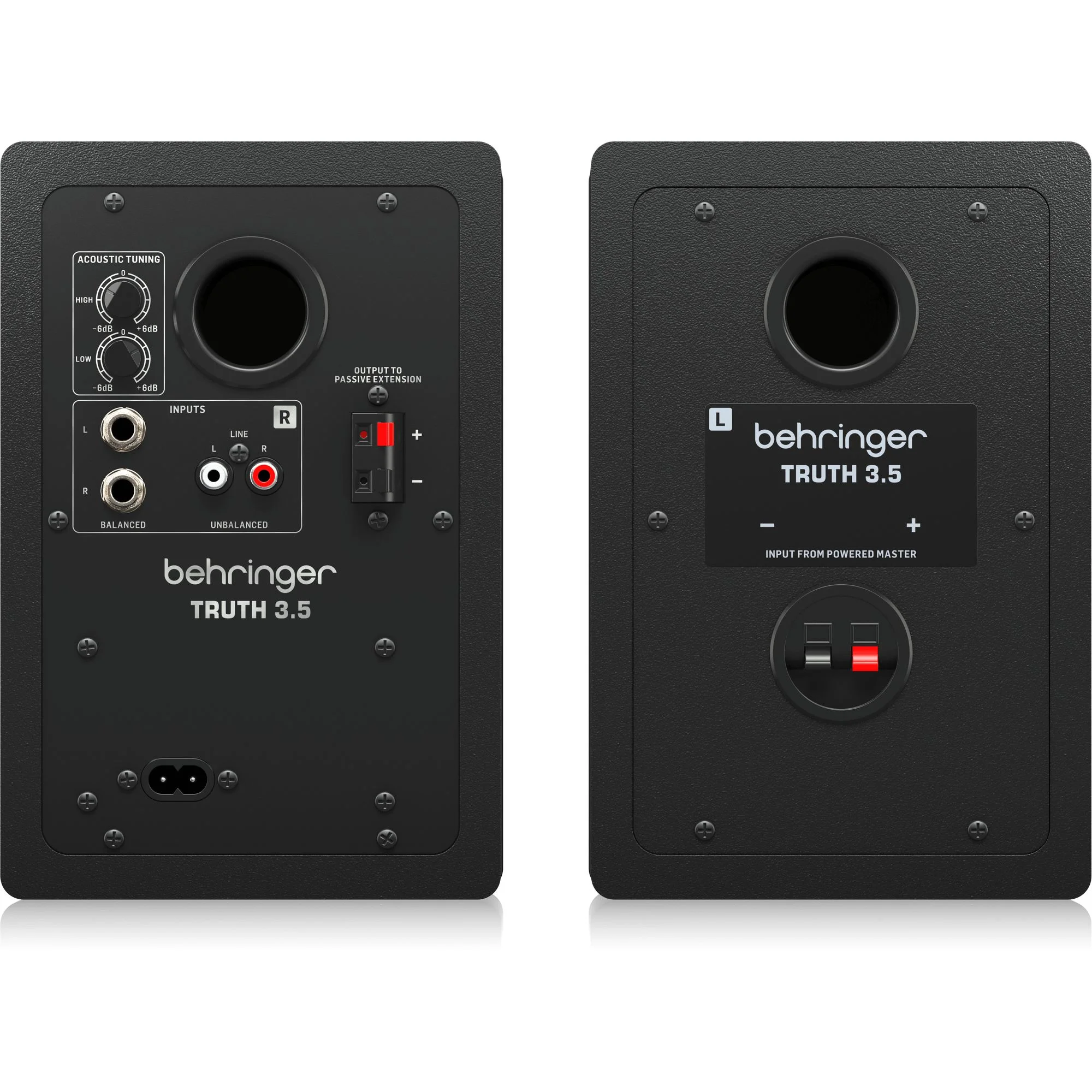 Фронтальные регуляторы низких и высоких частот дают возможность адаптировать систему под любой рабочий стол или комнату - независимо от её акустической подготовки. Это особенно важно для домашних студий, где пространство редко бывает идеально обработано. TRUTH 3.5 сохраняет стабильность и ясность звука там, где большинство бытовых колонок начинают искажать реальную картину.