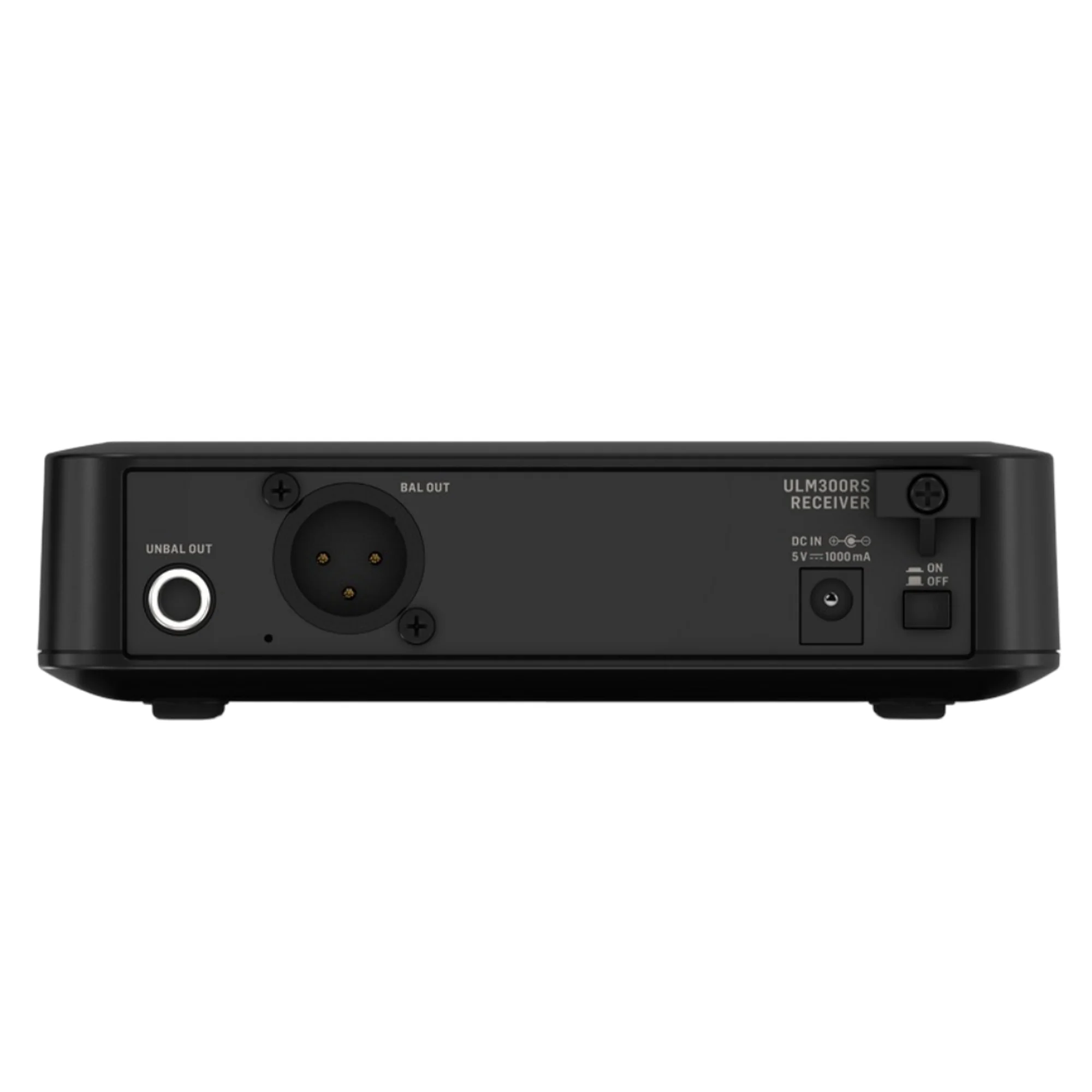 Беспроводной приемник питается от источника питания 5 В, он может работать на расстоянии до 200 метров, имеет сбалансированный XLR и несбалансированный 1/4" выходы для простого соединения с микшерами или иным оборудованием. Светодиодные индикаторы показывают состояние питания и батареи, уровень звука и сигнала.