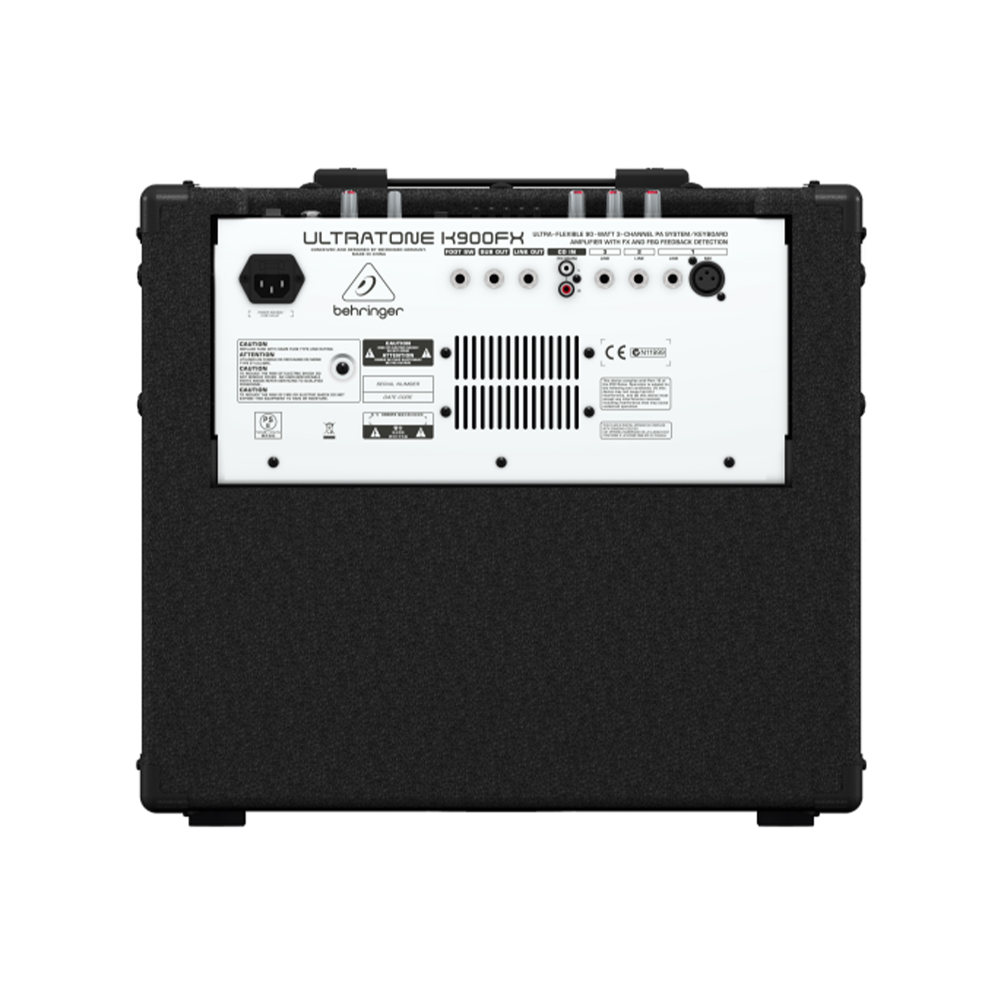 Behringer Ultratone K900FX – 90-ваттный усилитель для клавишных инструментов и микрофона. Три канала с отдельными входными разъёмами и регулировкой обработки сигнала, мощный цифровой эффект-процессор и эквалайзер с функцией поиска частоты акустической обратной связи позволяют организовать полноценный концерт без какого-либо дополнительного оборудования. При этом простота Ultratone K900FX в обращении способствует быстрому подключению инструментов и настройке звучания прямо в процессе выступления, благодаря чему снимается необходимость привлечения к работе звукооператора.