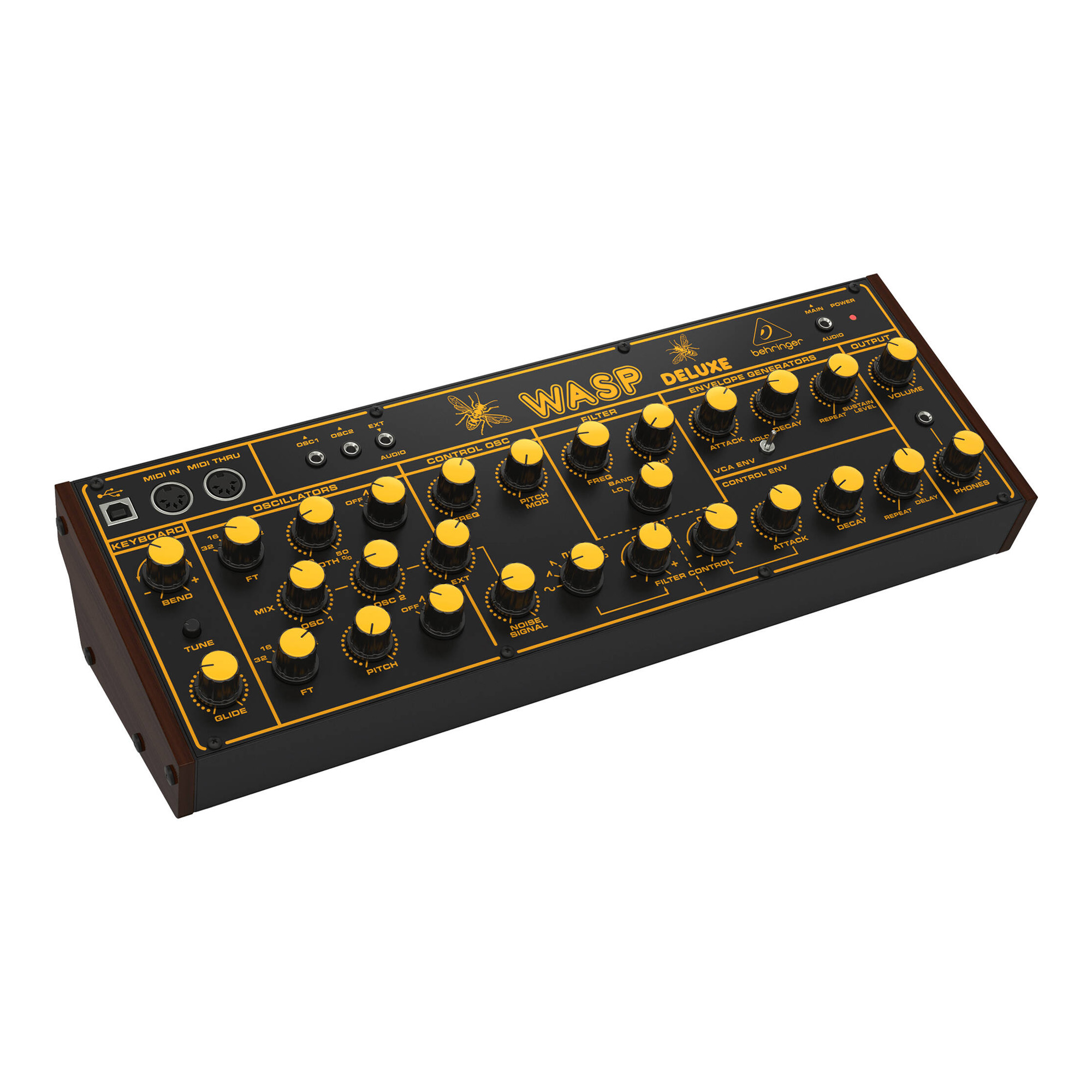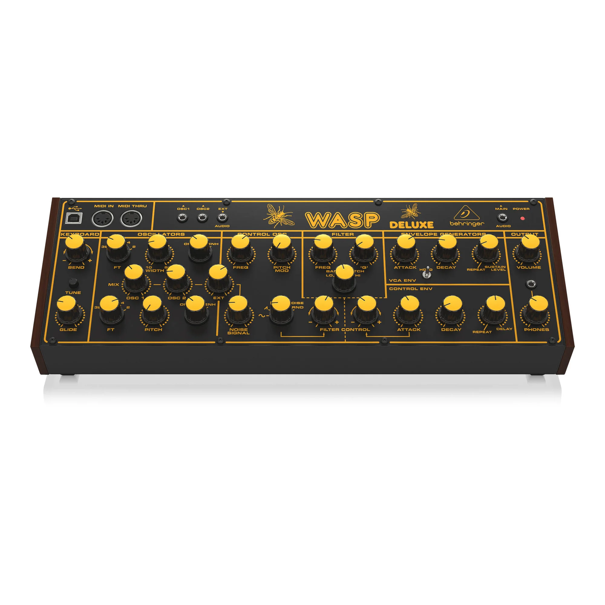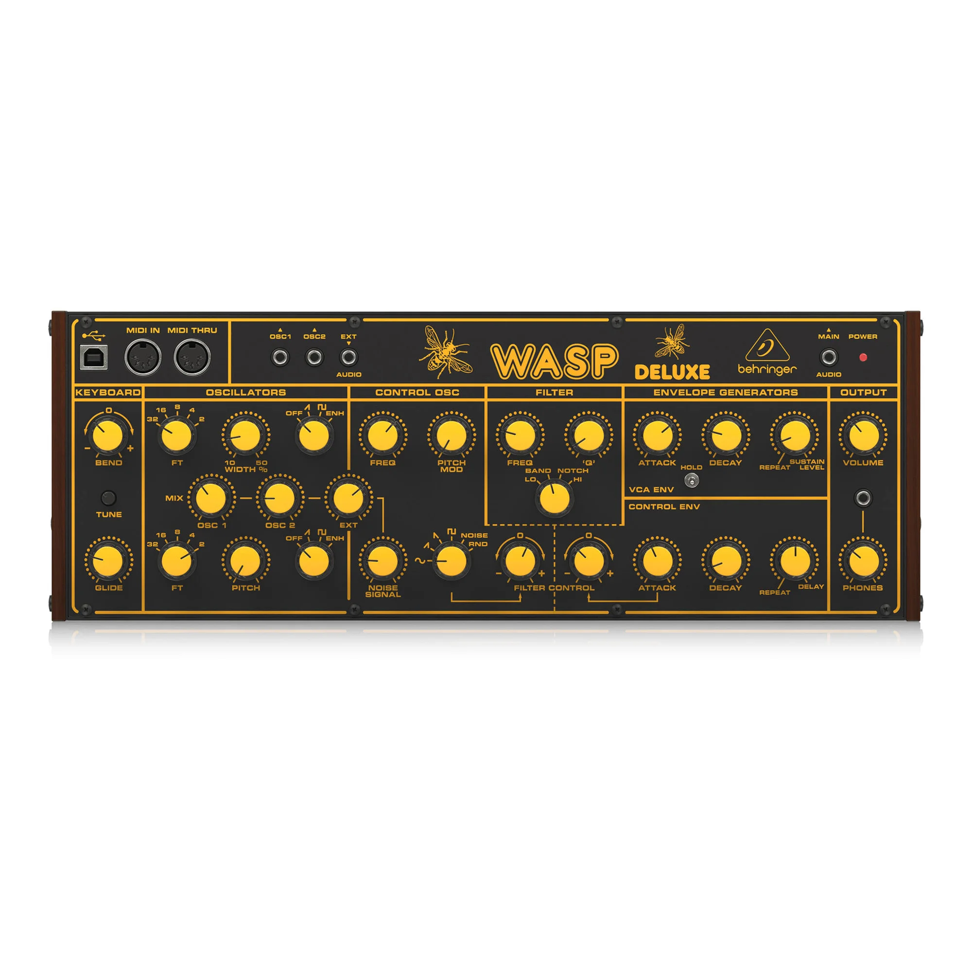При проектировании Wasp Deluxe было уделено большое внимание, включая использование оригинальной схемы Wasp Deluxe. Именно это придает ему сверхгибкие возможности по формированию звука, которые охватывают все - от сверхжирных басов и лидовых тонов, потрясающих эффектов и потусторонних звуков, которые вы можете себе представить.