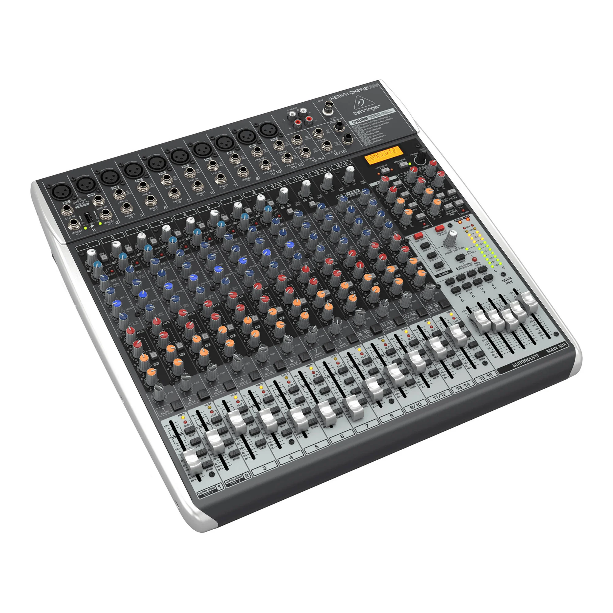 Канал EQ основан на схеме British пультов 60-70-х, позволяет наполнять сигналы невероятной теплотой и детализировать музыкальный характер. Благодаря встроенному реверсивному стерео USB аудио интерфейсу, можно напрямую подключать РС или Мас компьютеры через отдельный USB кабель. Теперь любой источник сигнала подключается в микшер и может быть записан прямо на хард диск. Программное обеспечение имеет более 100 виртуальных инструментов и 50 FX плагинов, превращая компьютер в домашнюю или мобильную записывающую студию. QX2442USB имеет 10 микрофонных входа, 4 стерео канала, 4 Aux посыла, 4 стерео Aux возврата плюс легкие в использовании компрессоры на все моно каналы. Другими важными характеристиками являются четыре подгруппы для гибкости микширования, L/R Main Inserts (идеальный путь подключения графических эквалайзеров или компрессоров) и 8 Direct Outs и Sub Outs для аналоговой записи. Благодаря встроенному приемнику ULM можно наслаждаться беспроводной микрофонной функциональностью.