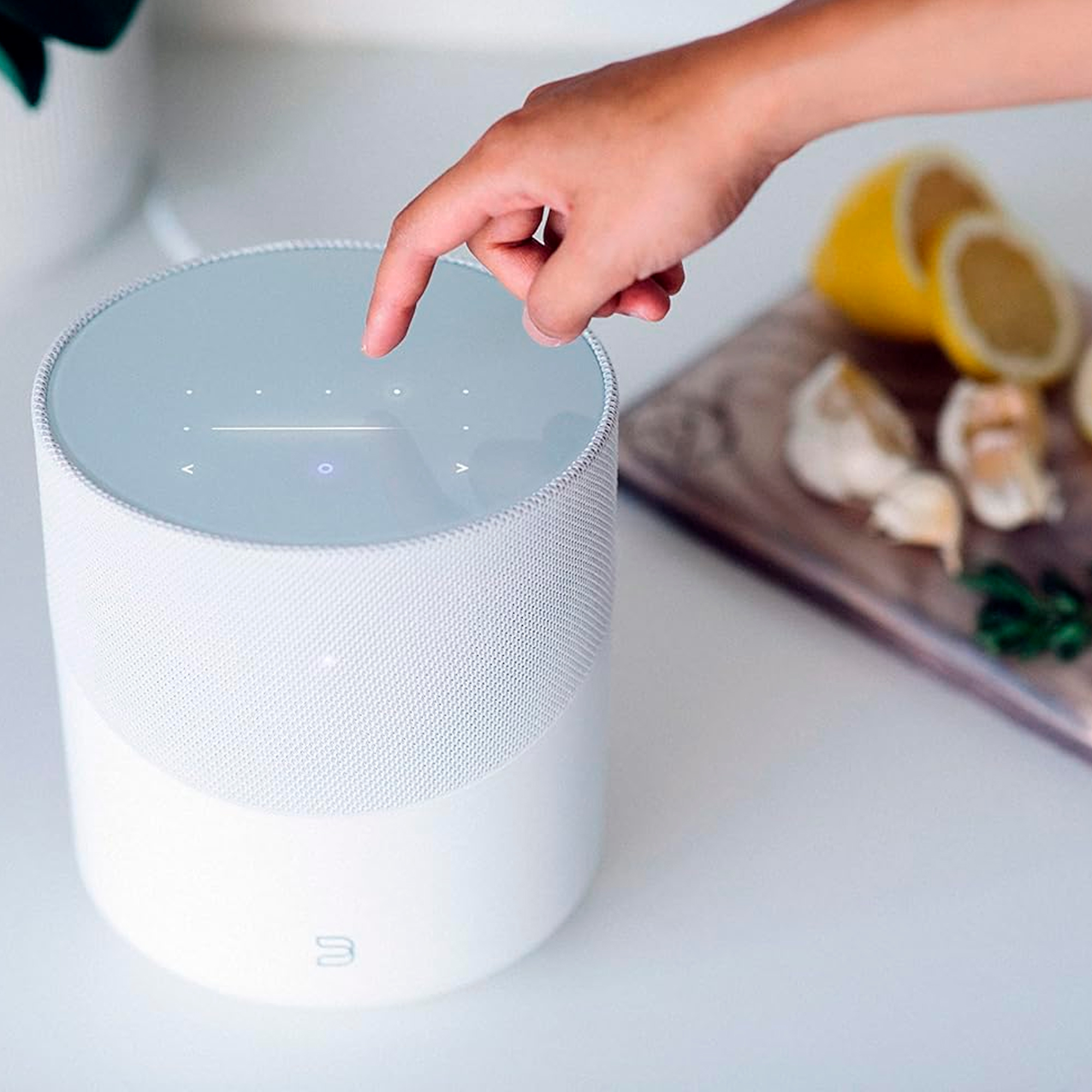 Удобное управление колонкой обеспечивается за счет специального мобильного приложения или голосовых помощников Alexa, Google Assistant и Siri. В то же время на верхней панели имеются и кнопки основных функций для возможности оперативной регулировки громкости или переключения композиций.