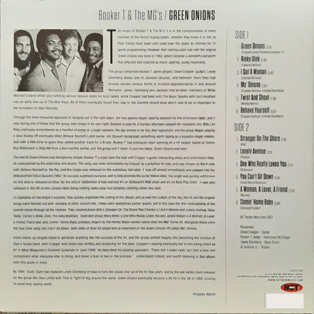Именно здесь впервые прозвучала легендарная композиция “Green Onions” - фирменный, гипнотически качающий грув с узнаваемыми клавишами Booker T. Jones, хлесткой гитарой Steve Cropper, ритмичным басом Lewie Steinberg и четкими ударными Al Jackson Jr.. Этот трек мгновенно покорил американские чарты, превратившись в бессмертный стандарт жанра, а сам альбом стал эталоном инструментального соула - энергичного, чувственного и стильного.
