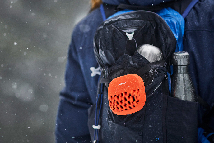 SoundLink Micro – ваш спутник дома и в путешествиях. Прочный корпус снабжен исключительно крепким, устойчивым к истиранию силиконовым ремнем, надежно фиксирующим систему на окружающих предметах, одежде или снаряжении.