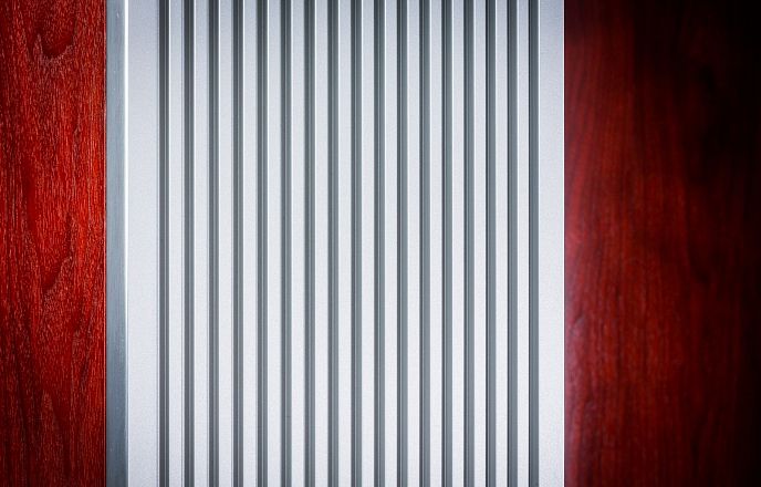 Корпус модели имеет рассчитанный с помощью компьютерного моделирования каркас Matrix с прочными ребрами жесткости из фанеры и элементами из металла. Каркас плавно огибается спереди и с боков одним фанерным листом и сужается к задней части, выполненной из алюминия. Такая жесткая платформа обеспечивает эффективное демпфирование, а изогнутые линии решают проблемы, связанные со стоячими волнами и дифракцией. В днище кабинета встроен фазоинвертор Flowport, понижающий турбулентность потока воздуха.