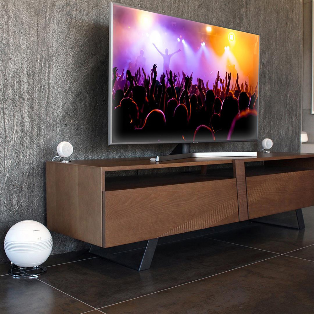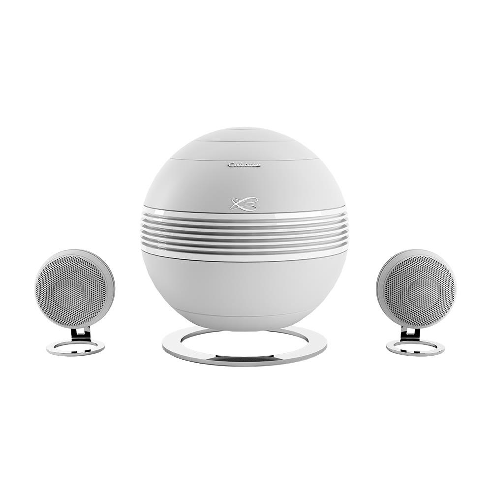Благодаря 2 минималистичным сателлитам диаметром 8 см и компактному активному сабвуферу диаметром 22 см, The Pearl Keshi незаметно и элегантно интегрируется в ваш дом, где бы вы ее ни установили — в гостиной, рабочем кабинете или спальне.