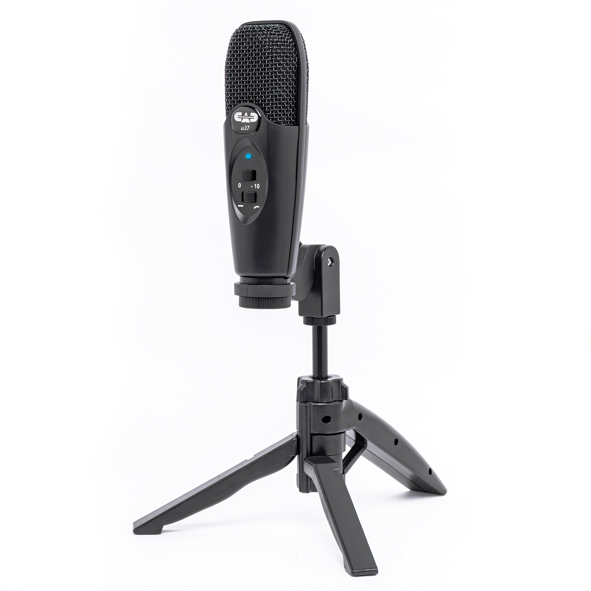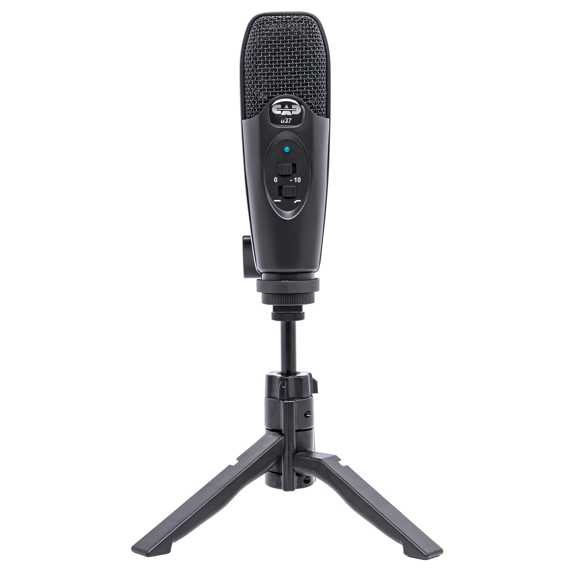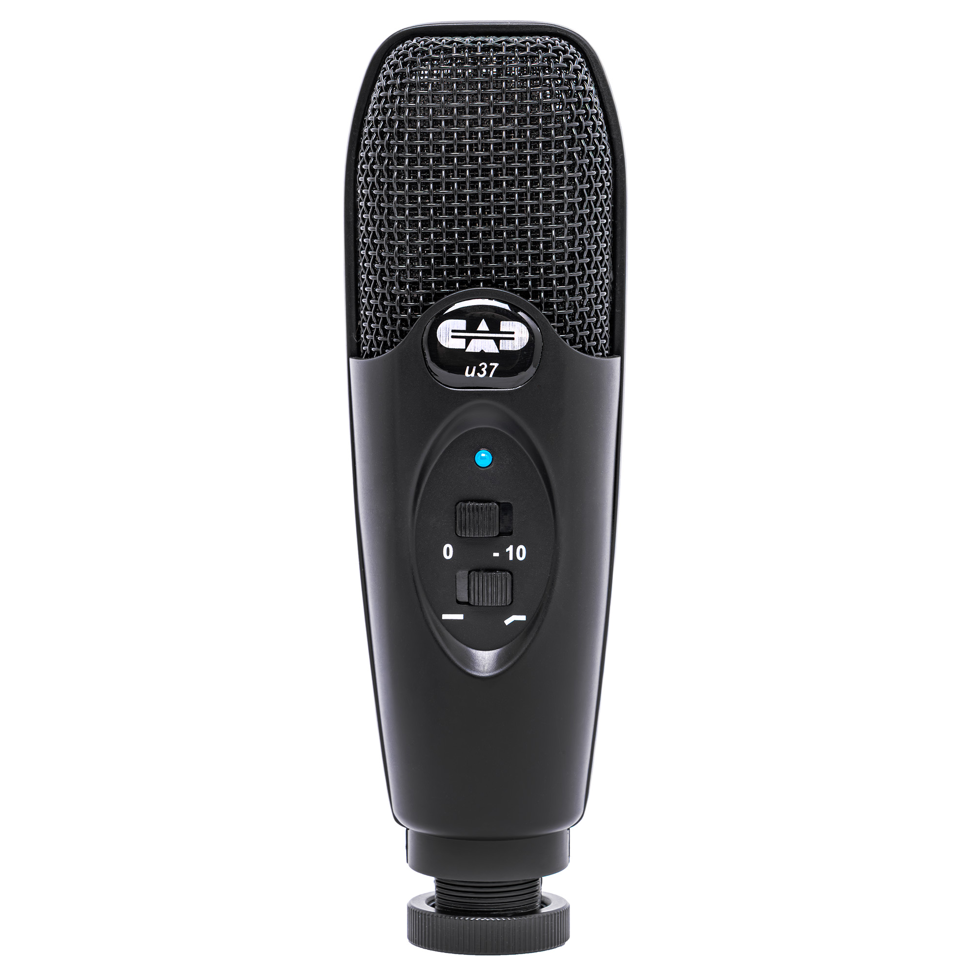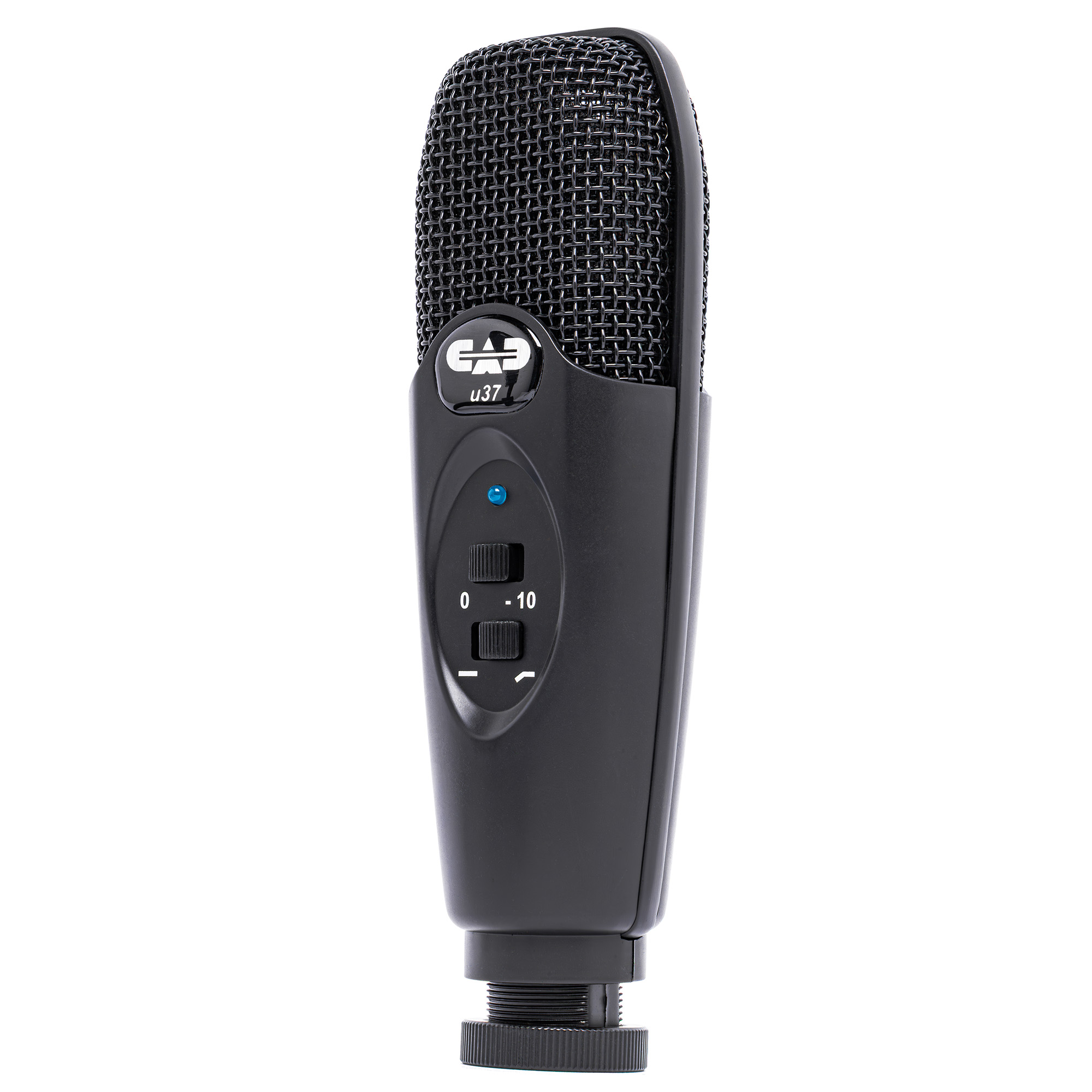 Однонаправленный микрофон CAD U37 USB имеет два переключателя, которые находятся спереди. Первый позволяет Вам уменьшать чувствительность микрофона для качественной и чистой записи сильно громких источников звуков. К примеру, переключатель должен быть в позиции «-10» для громких голосов, перкуссий и других источников звука с высоким уровнем звукового давления. Для нормальных по громкости голосов и струнных инструментов предпочтительная позиция переключателя «0». В случае, если запись вышла не чистой или искажённой, поставьте переключатель в позицию «-10» и перезапишите.