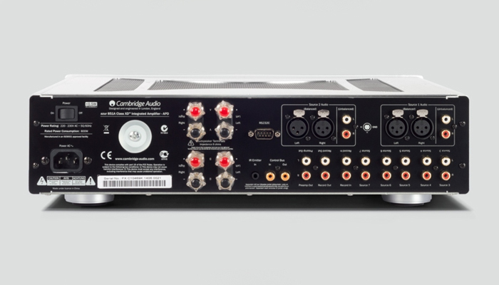 Усилитель Cambridge Audio Azur 851A оснащен небалансными и балансными входными разъемами, и, таким образом, станет идеальным партнером для CD-плеера фирмы, имеющим XLR-выходы. Всего предусмотрено семь линейных входов, вход/выход для подключения записывающего устройства, и регулируемый выход с предусилителя. Усилитель оснащен качественными винтовыми клеммами для подключения двух пар АС.