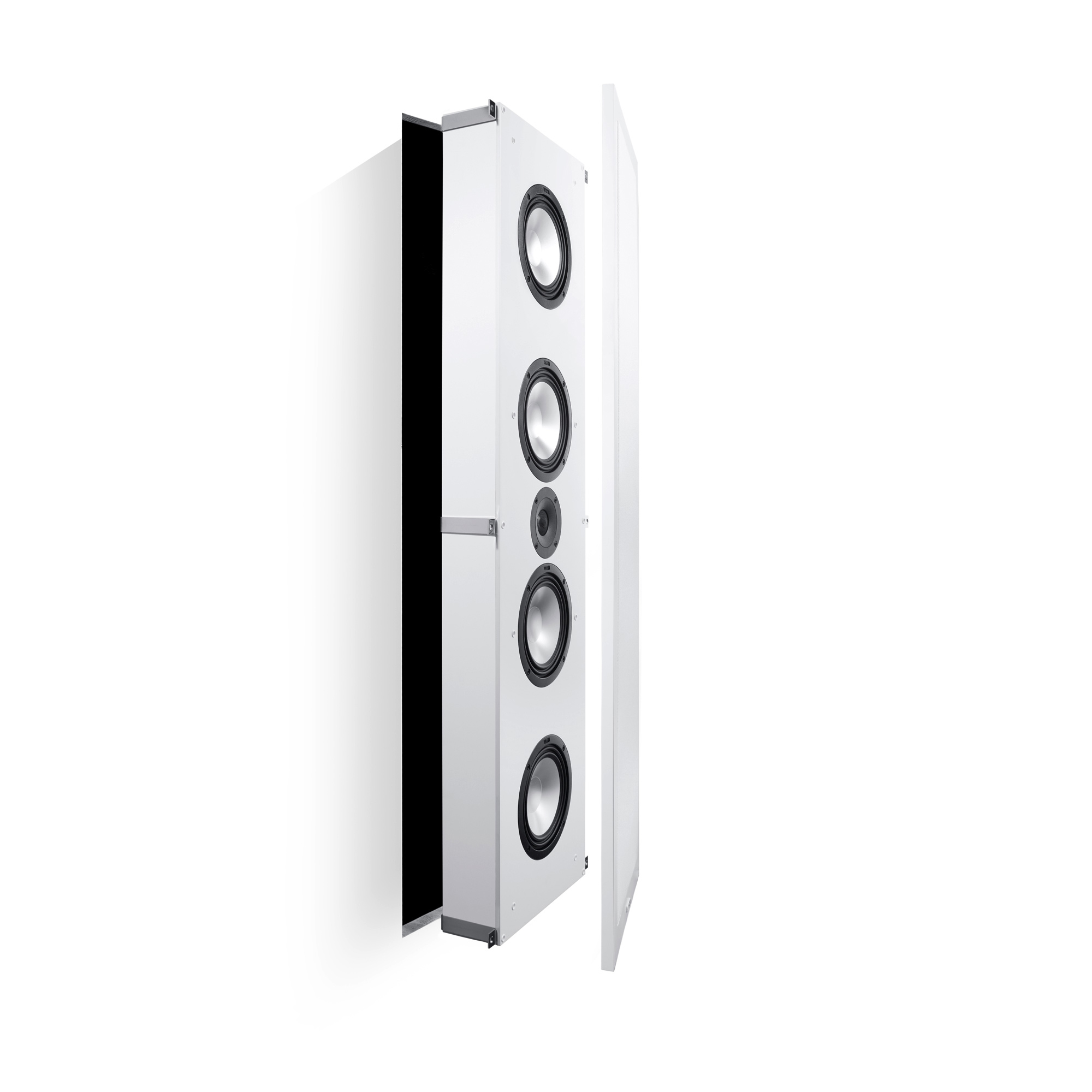 Возможность выбора между встраиванием и подвешиванием на стену дает широкое поле для экспериментов. Например, при инсталляции кинотеатра можно сначала выбрать оптимальное место для акустики, а уже затем делать отверстия в стенах. Кроме того, имея собственный акустический объем, Canton Atelier будут звучать гарантировано хорошо вне зависимости от того, как организовано пространство внутри стены.