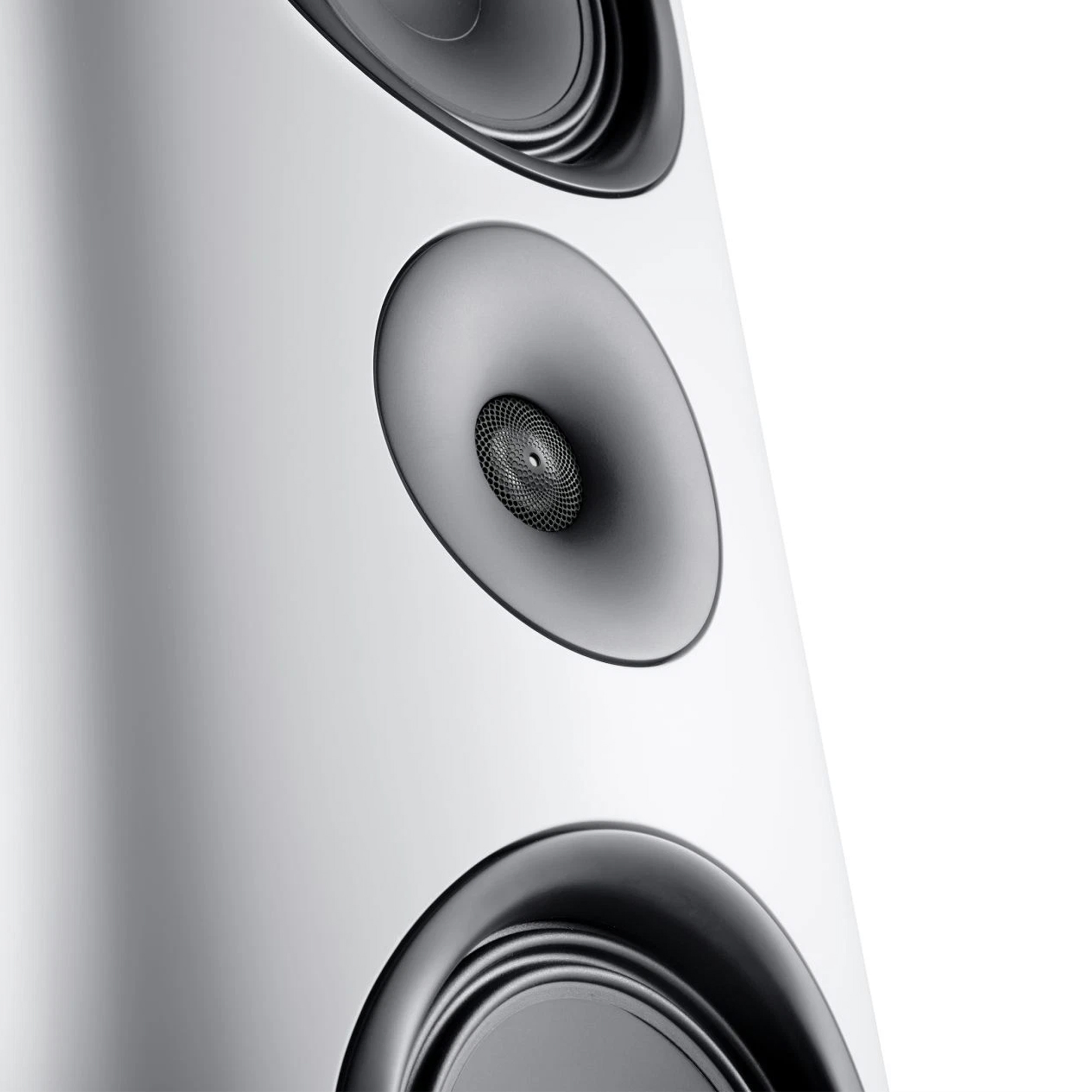 Новая твитерная система с купольным твитером с алмазоподобным (DLC) покрытием обеспечивает чрезвычайно точное и четкое воспроизведение высоких частот. Дополнительная интегрированная, вновь разработанная звуковая линза действует как волновод и механическая воздушная подушка. Она оптимизирует эффективность и значительно расширяет полосу пропускания высоких частот — для воздушного, объемного звукового поля и тонко проработанных деталей, которые оживляют музыку.