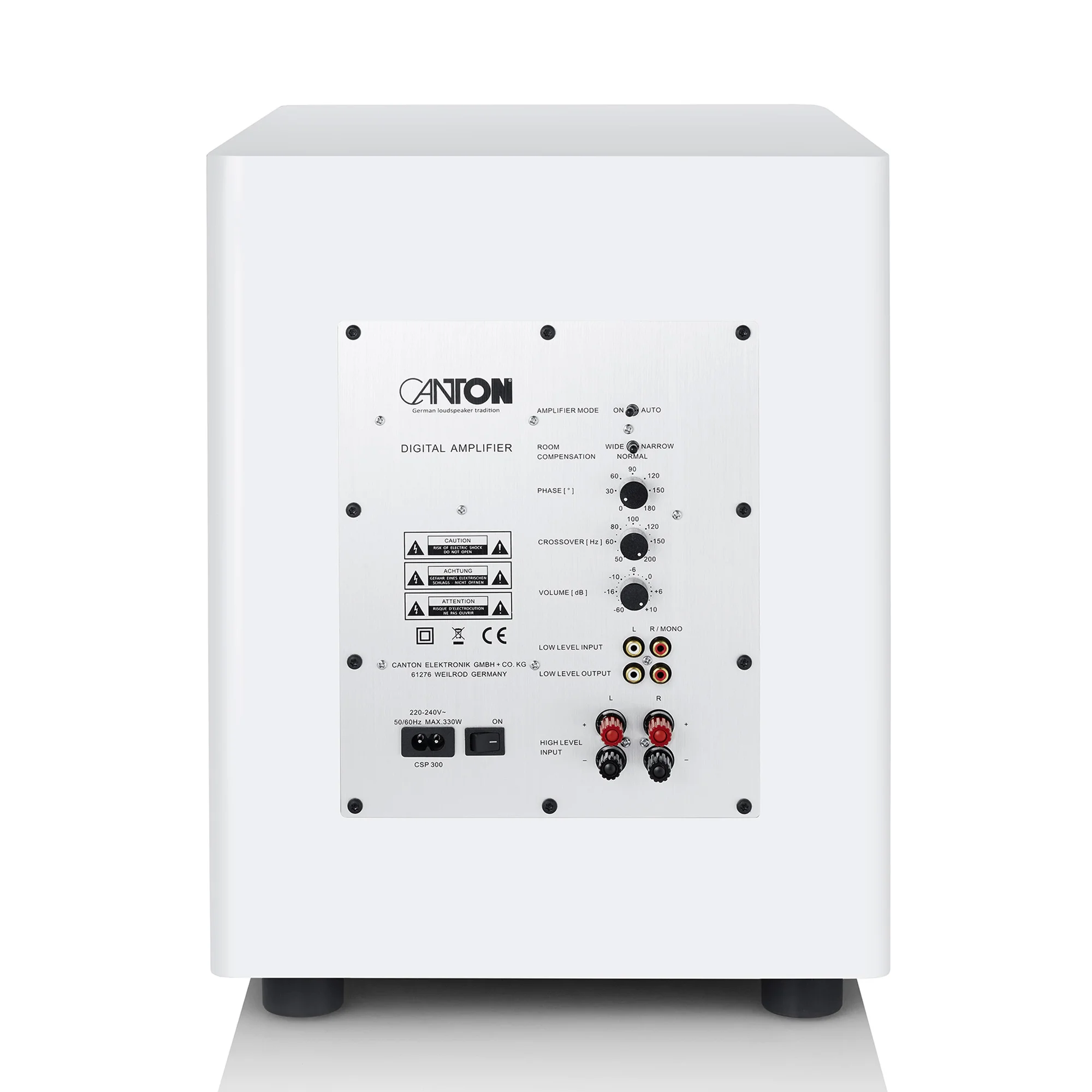 Активный сабвуфер Townus Sub 12 от Canton работает по принципу фазоинвертора с пассивной мембраной, направленной вниз. Чтобы гарантировать точные механические характеристики, он оснащен приводом больших размеров, включающим технологию объемного звучания последнего поколения. Многослойный волновой объемный звук допускает гораздо больший ход, чем обычные объемные динамики, и снижает искажения звука. Для максимальной точности и правильной импульсной обработки басовых сигналов используется высокопроизводительное шасси из титана и жесткая пассивная мембрана из МДФ.