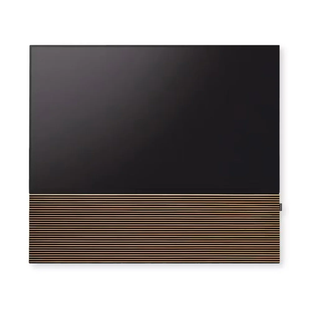 Сменная декоративная панель для аудиосистемы CANVAS HiFi, соответствующая ширине вашего 75-дюймового телевизора. Отделка на выбор: простая текстильная, дизайнерская текстильная от бюро Kvadrat, с деревянными панелями.