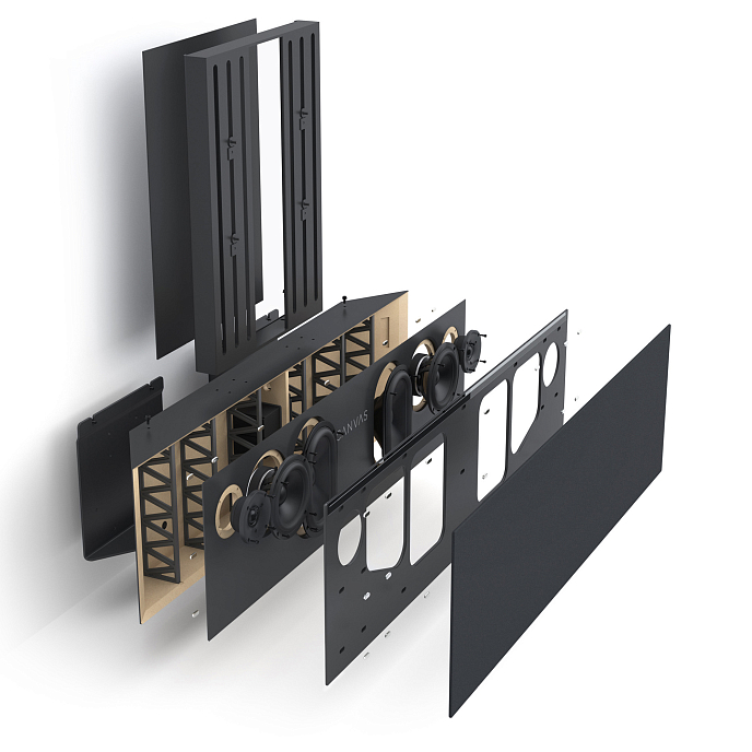 Сочетание конструкции высококачественных динамиков, коррекции звука под конкретное помещение и собственная технологии BACCH 3D обеспечивает настоящее HiFi-качество звучания — такое, которое ранее можно было получить только от специализированных аудиосистем класса High End. Акустическая система CANVAS включает переднюю решетку, которая соответствует ширине вашего 65-дюймового телевизора. Отделка на выбор: простая текстильная, дизайнерская текстильная от бюро Kvadrat, с деревянными панелями из дуба