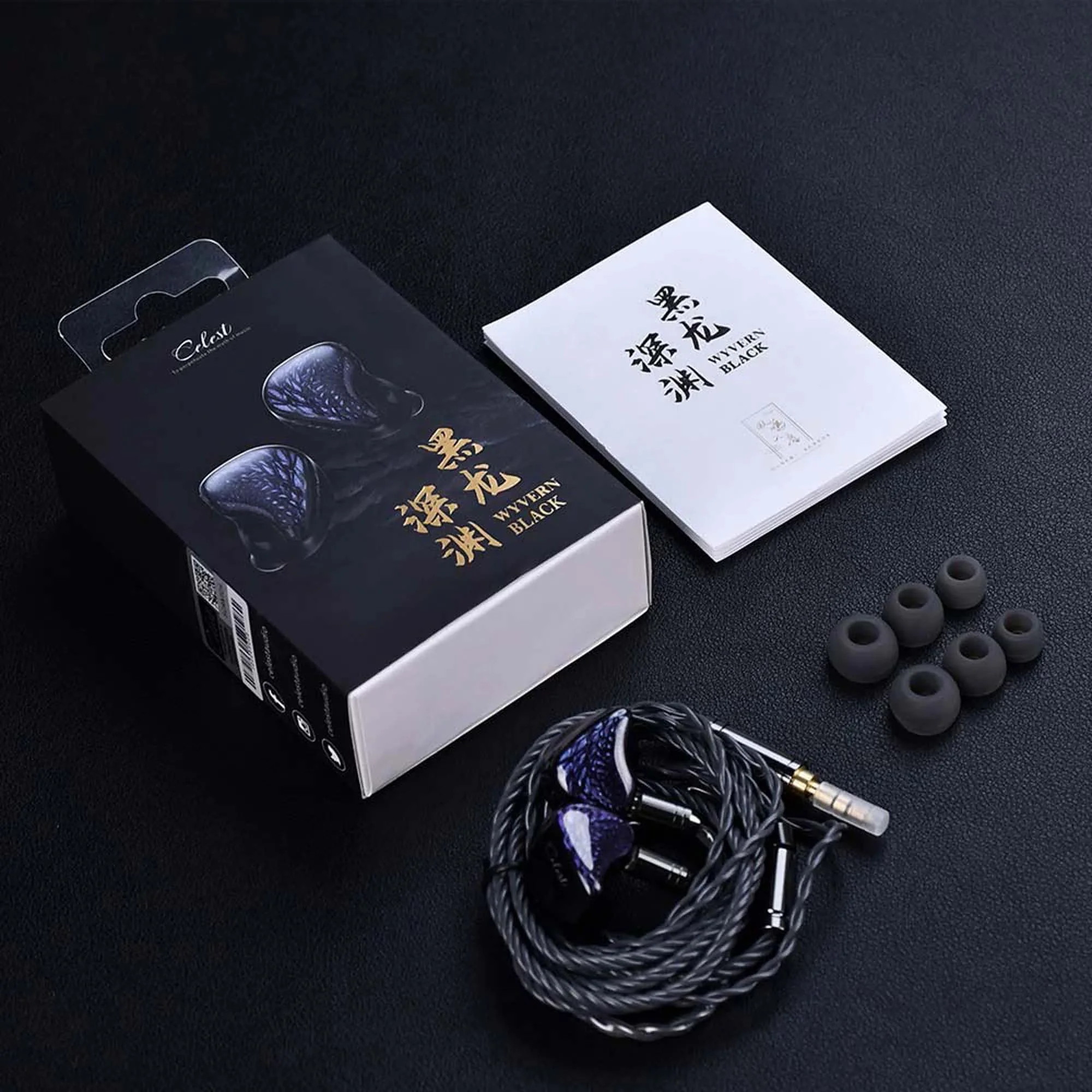 Celest Wyvern — это бюджетные наушники, оснащенные широкополосным динамическим излучателем LCP с диафрагмой диаметром 10 мм. Как и другие продукты Celest, название Wyvern взято у одного из героев китайской мифологии – это могучий дракон с девятью головами, каждая с уникальной мордой, и телом, покрытым чешуей. Бог-дракон с крыльями и четырьмя большими когтями, он может дышать огнем и повелевать погодой. Именно этим божественным мифологическим персонажем вдохновились в Celest при разработке новых мощных наушников Wyvern.