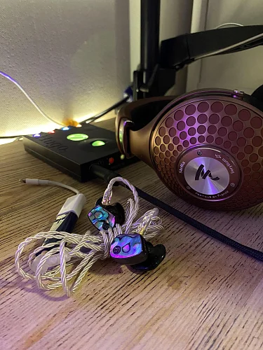 - цветовая индикация частоты дискретизации, режимов Crossfeed, типов выбранных цифровых фильтров, выбранных входов, уровня заряда батареи и уровня громкости да;