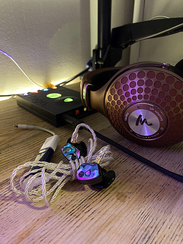 - цветовая индикация частоты дискретизации, режимов Crossfeed, типов выбранных цифровых фильтров, выбранных входов, уровня заряда батареи и уровня громкости да;