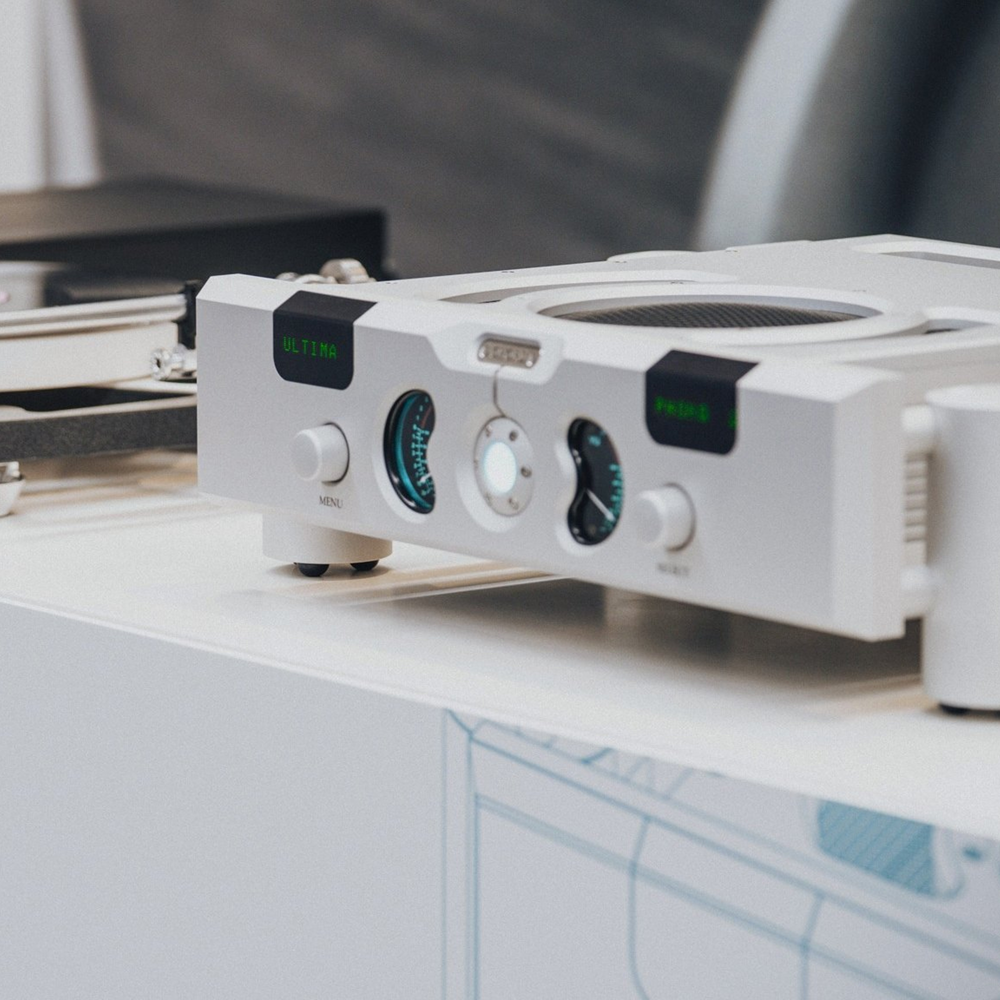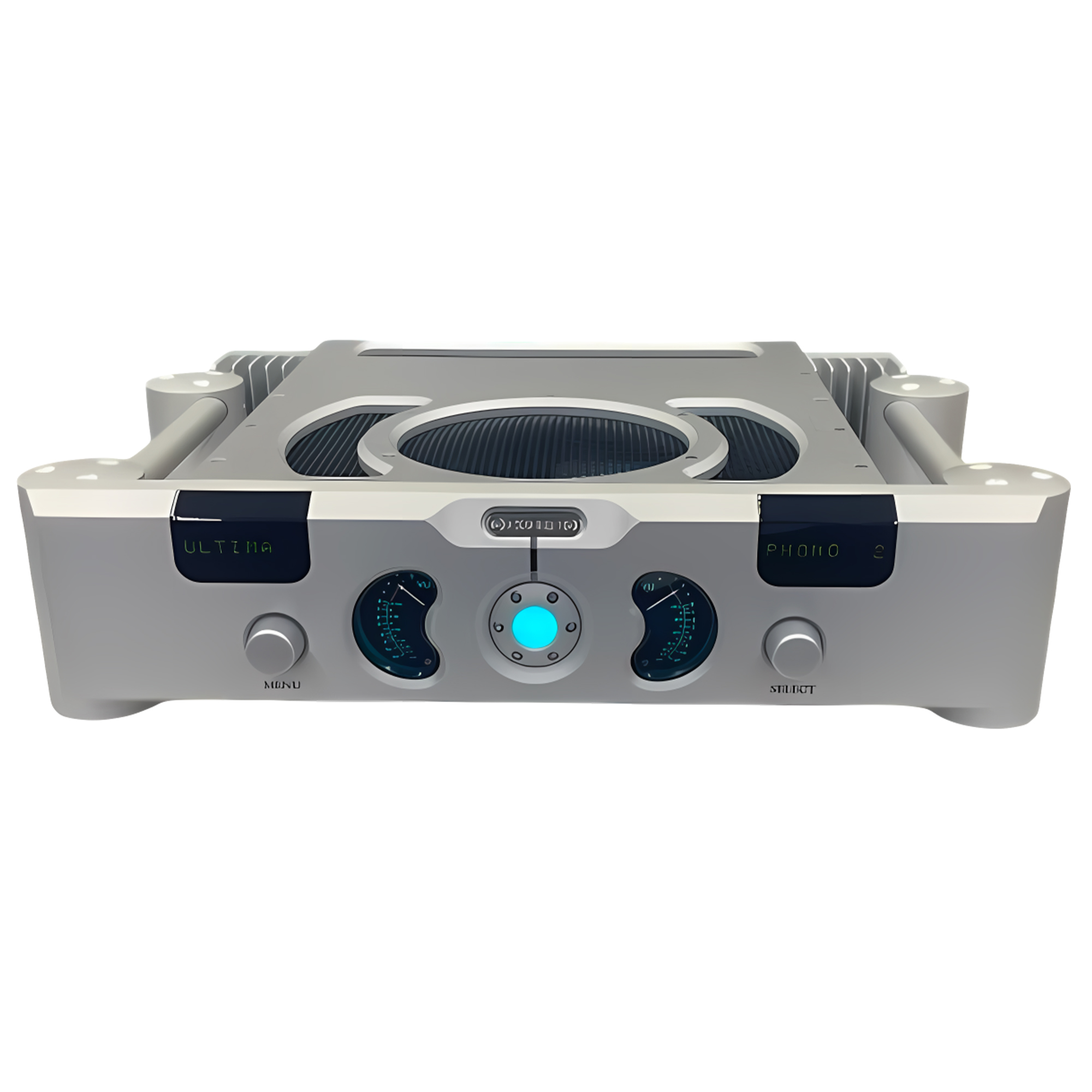 Ultima — это корпус из фирменного алюминия, на передней панели которого выделяется крупный LED-дисплей с мягкой голубой подсветкой. Два стрелочных индикатора уровня сигнала, располагающиеся по бокам дисплея, придают компоненту современного хай-тек стиля утончённый винтажный штрих.