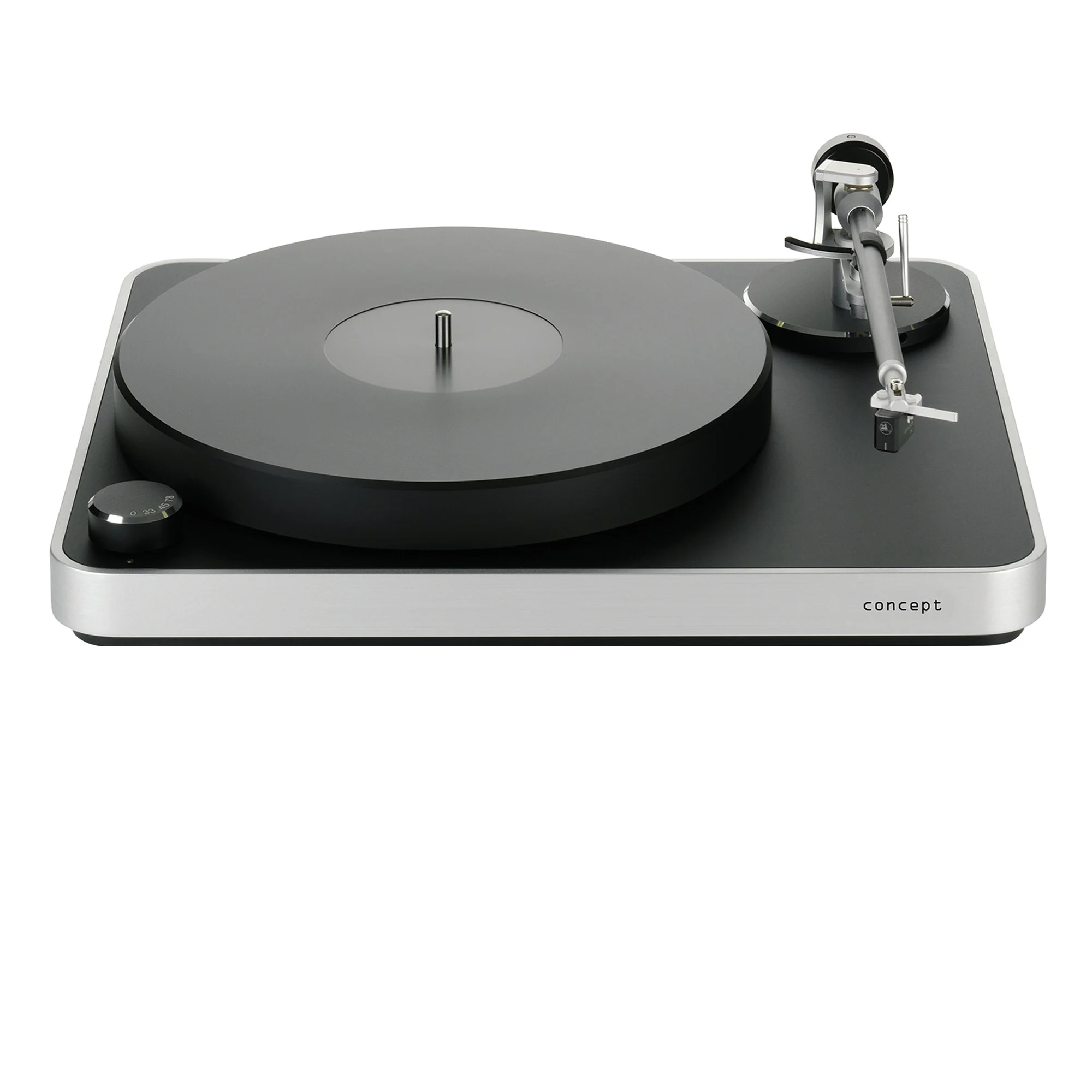 Компания обращает внимание на то, что примененный в этой модели тонарм Satisfy Kardan посажен на специальный магнитный подшипник, практически полностью исключающий трение. Расстояние между осью и иглой равно 222 мм, а эффективная длина тонарма составляет 239,3 мм. Модель комплектуется прецизионным аудиофильским картриджем с подвижным магнитом из бескислородной меди, который весит 8.4 грамма. Форма иглы соответствует типу Micro Line (эллипсовидная). При желании головку звукоснимателя можно заменить, правда, все настройки придется делать заново. Тоже относится и к тонарму. Все это свидетельствует о том, что при необходимости можно легко провести апгрейд Concept MM.