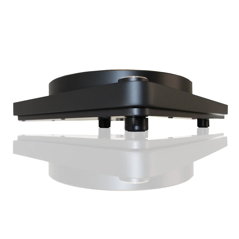 Основа корпуса поворотного стола изготовлена из древесноволокнистой плиты средней плотности или, по желанию заказчика, из массива дерева, скрепленного под высоким давлением. Верхний слой поворотного стола изготовлен из специального матированного пластика. Эта композиция минимизирует резонансы и обеспечивает идеальный внешний вид.