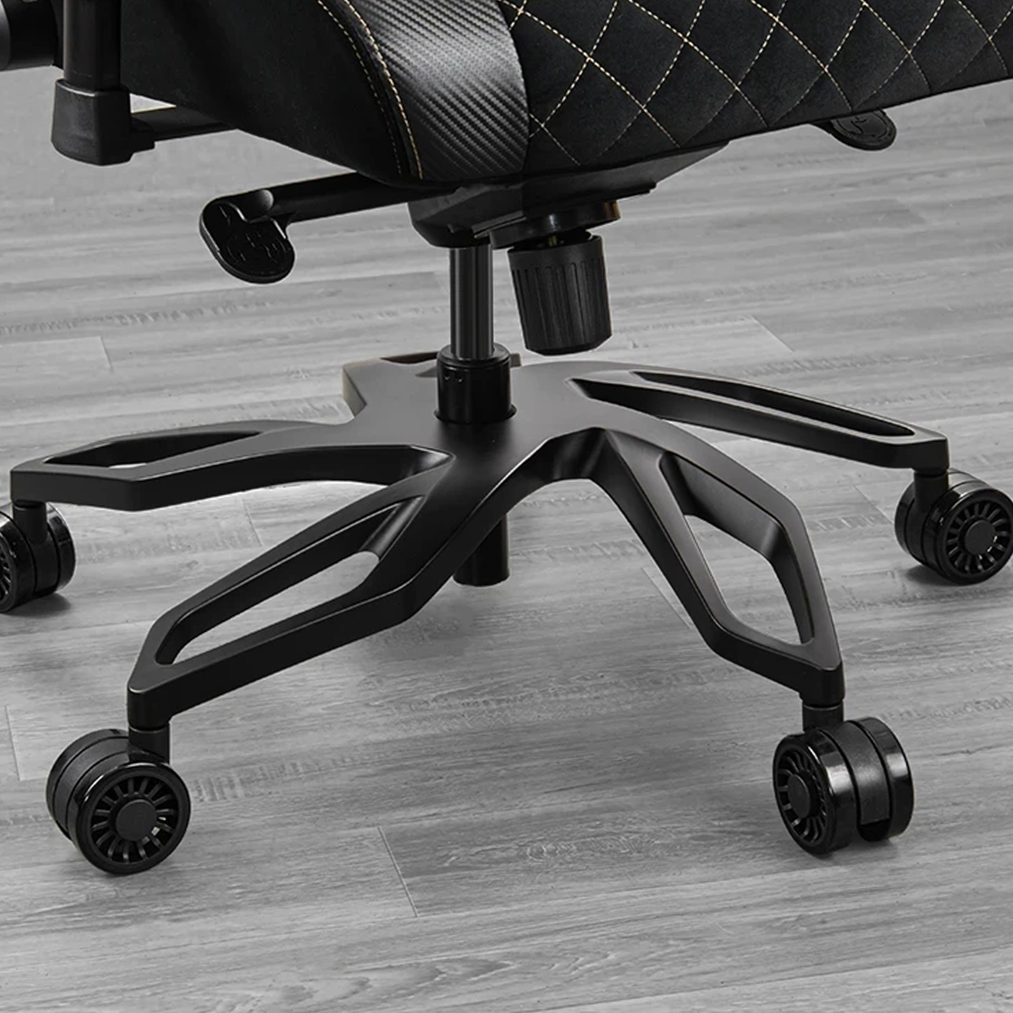 Главное визуальное и тактильное отличие Titan Pro V2 — это использование плюшевой бархатной ткани в качестве основного материала обивки. Этот материал, по мнению производителей, приятен на ощупь и обеспечивает лучшую воздухопроницаемость по сравнению с традиционной ПВХ-кожей, что особенно важно во время длительных игровых сессий. Боковины кресла и подушки при этом могут иметь акценты из ПВХ-кожи. Основа кресла — прочный стальной каркас, гарантирующий долговечность и стабильность конструкции.