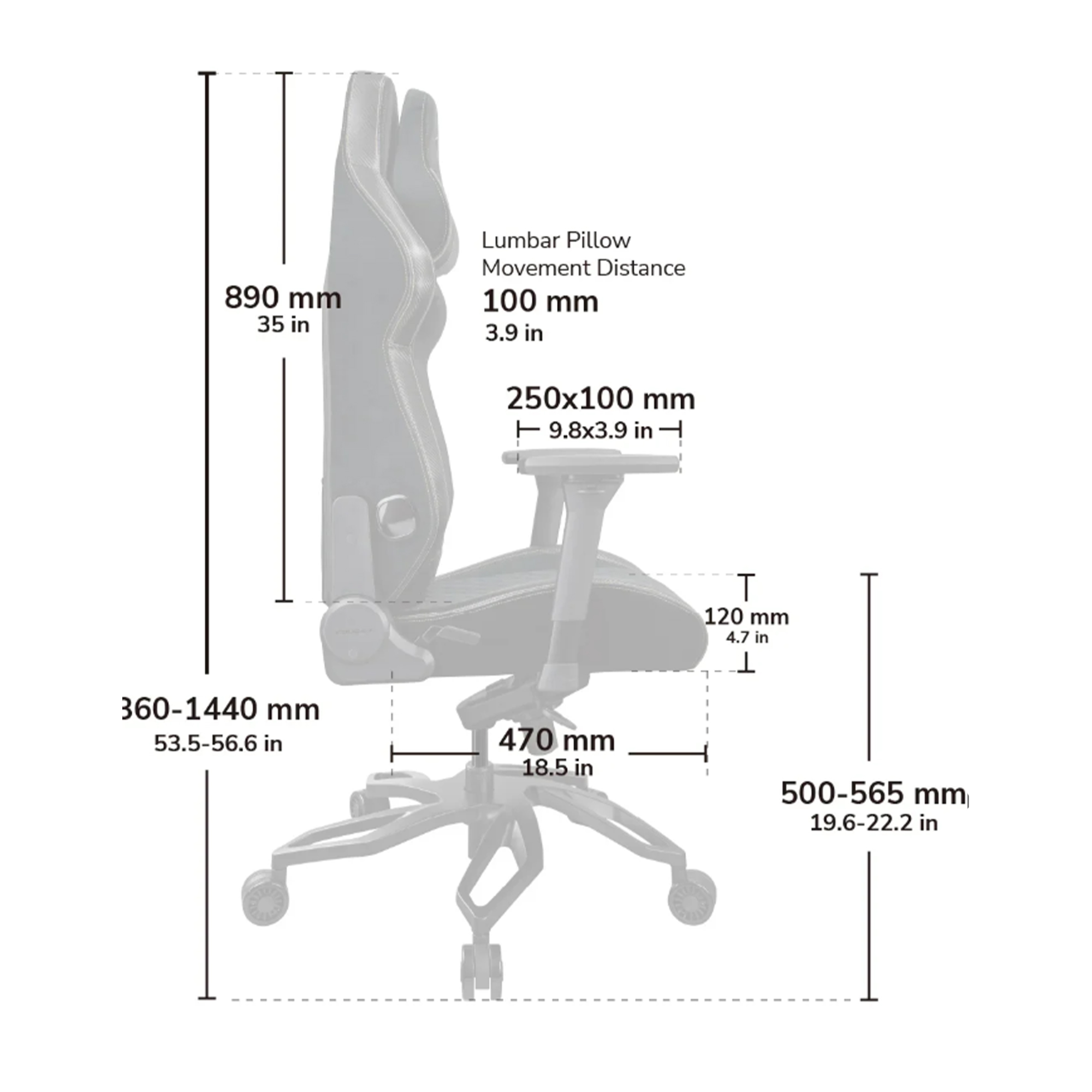 4D-подлокотники: регулируются по высоте, глубине, ширине и углу поворота.