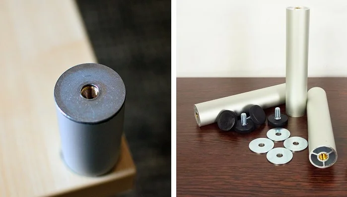 Ножки стоек Creaktiv Trend сделаны из круглого алюминиевого профиля Ø= 35 мм и имеют 4-камерную антирезонансную внутреннюю конструкцию. Стандартно поставляется с регулируемыми по высоте нижними упорами, который по желанию могут быть доукомплектованы и заменены конусными упорами, уменьшающими площадь соприкосновения с полом, для дополнительного снижения нежелательных вибраций.
