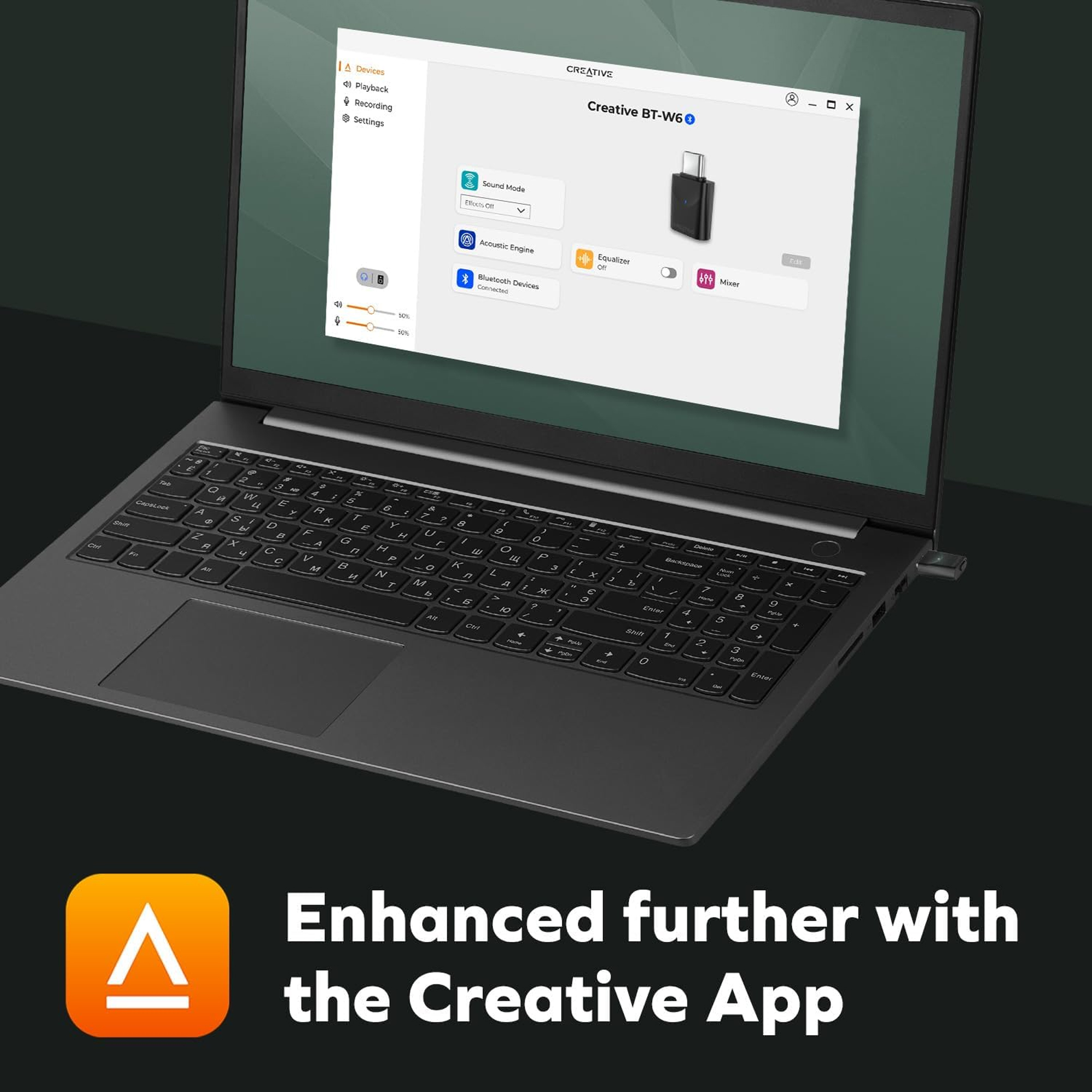Creative BT-W6 совместим с различными платформами, такими как ПК, Mac, игровые консоли и другие устройства с портом USB-C .