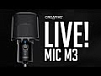 В корпусе Live! Mic M3 размещены два электретных капсюля диаметром 14 мм. Переключатель позволяет выбрать круговую либо кардиоидную диаграмму направленности. Реализована возможность оцифровки звукового сигнала с частотой дискретизации до 96 кГц и разрядностью до 24 бит.