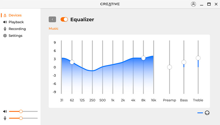 Независимо от того, являетесь ли вы энтузиастом низких частот или детализации передачи вокала, новое приложение Creative App позволяет изменять настройки эквалайзера согласно вашим предпочтениям в проводном режиме.